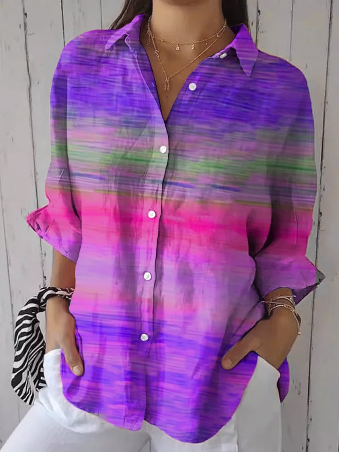 Women's Casual Retro Purple Art Gradient Shirt
