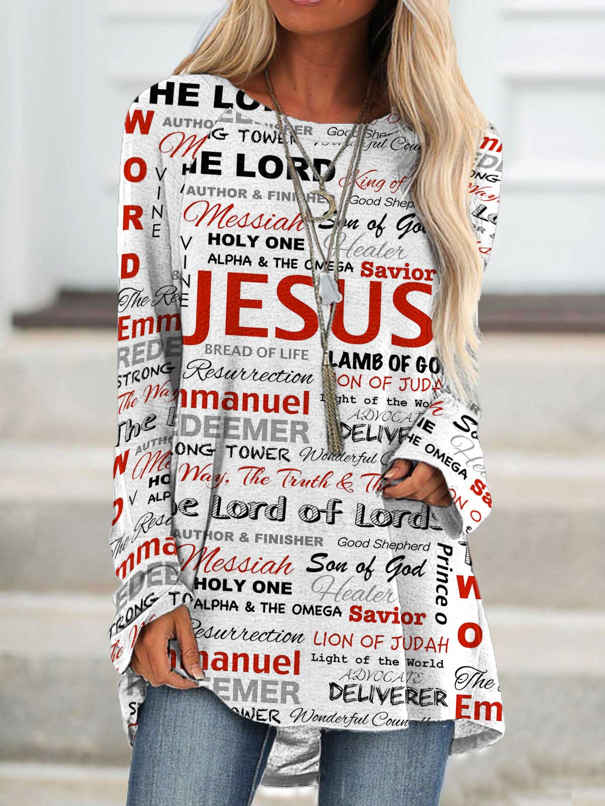 Women's Faith Respect Jesus Print V-Neck T-Shirt