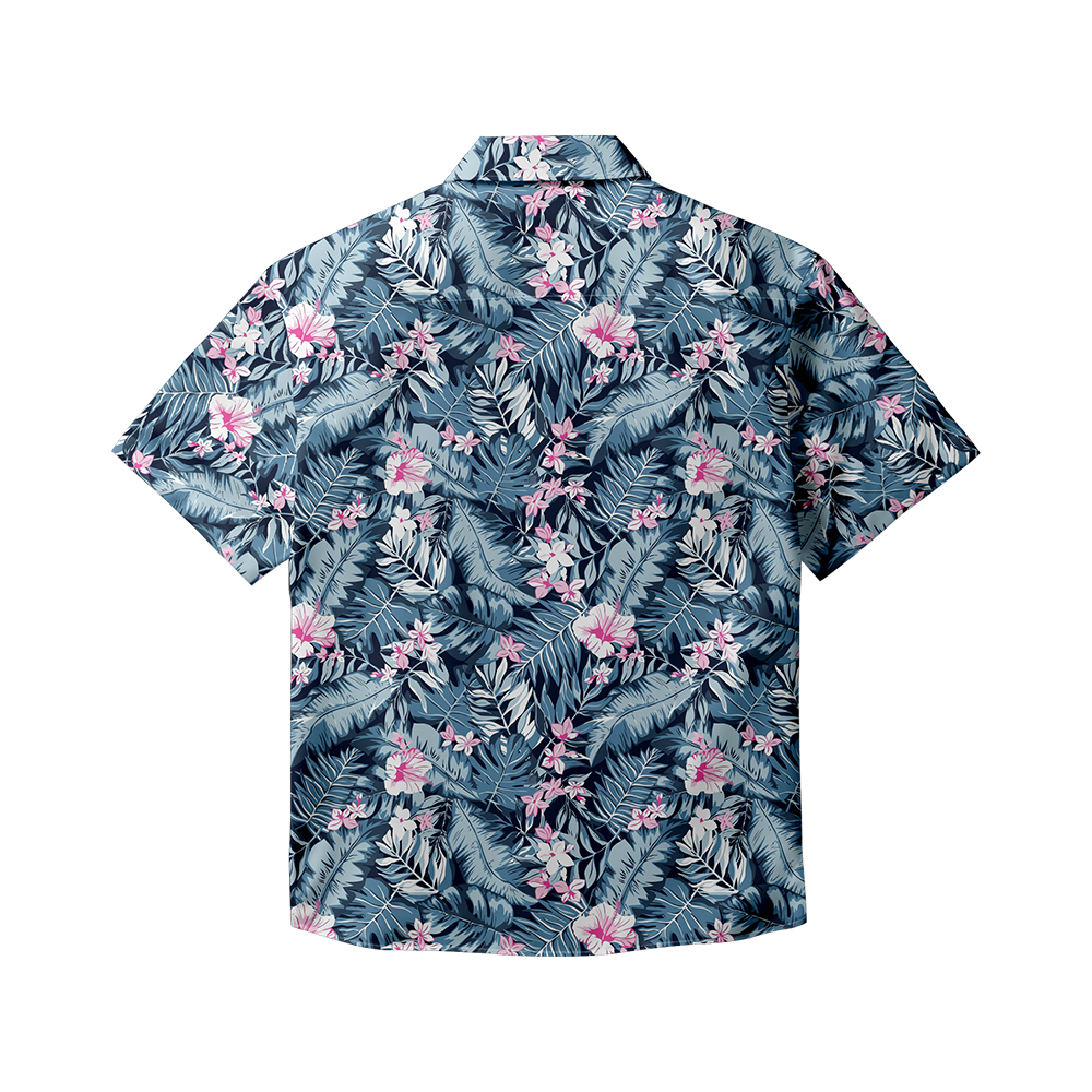 100% Cotton Men's Blue Jungle Print Short Sleeve Shirt
