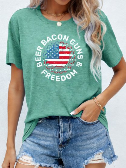 3D Printing Crew Neck Short Sleeve Independance Day Loose Going Out Casual T-Shirt – lolonb