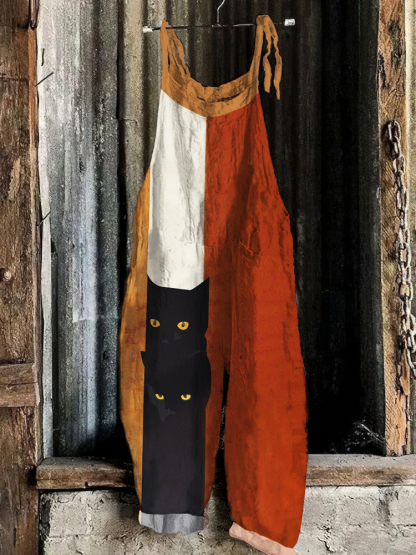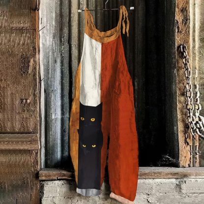 Abstract Black Cat Painting Art Loose Casual Jumpsuit