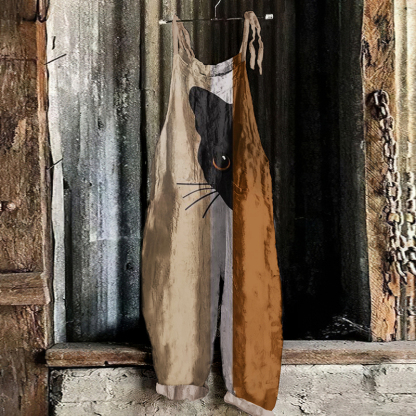 Abstract Cat Painting Art Loose Casual Jumpsuit