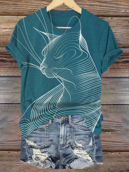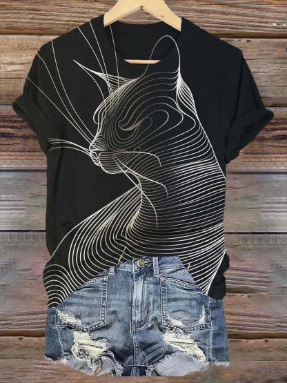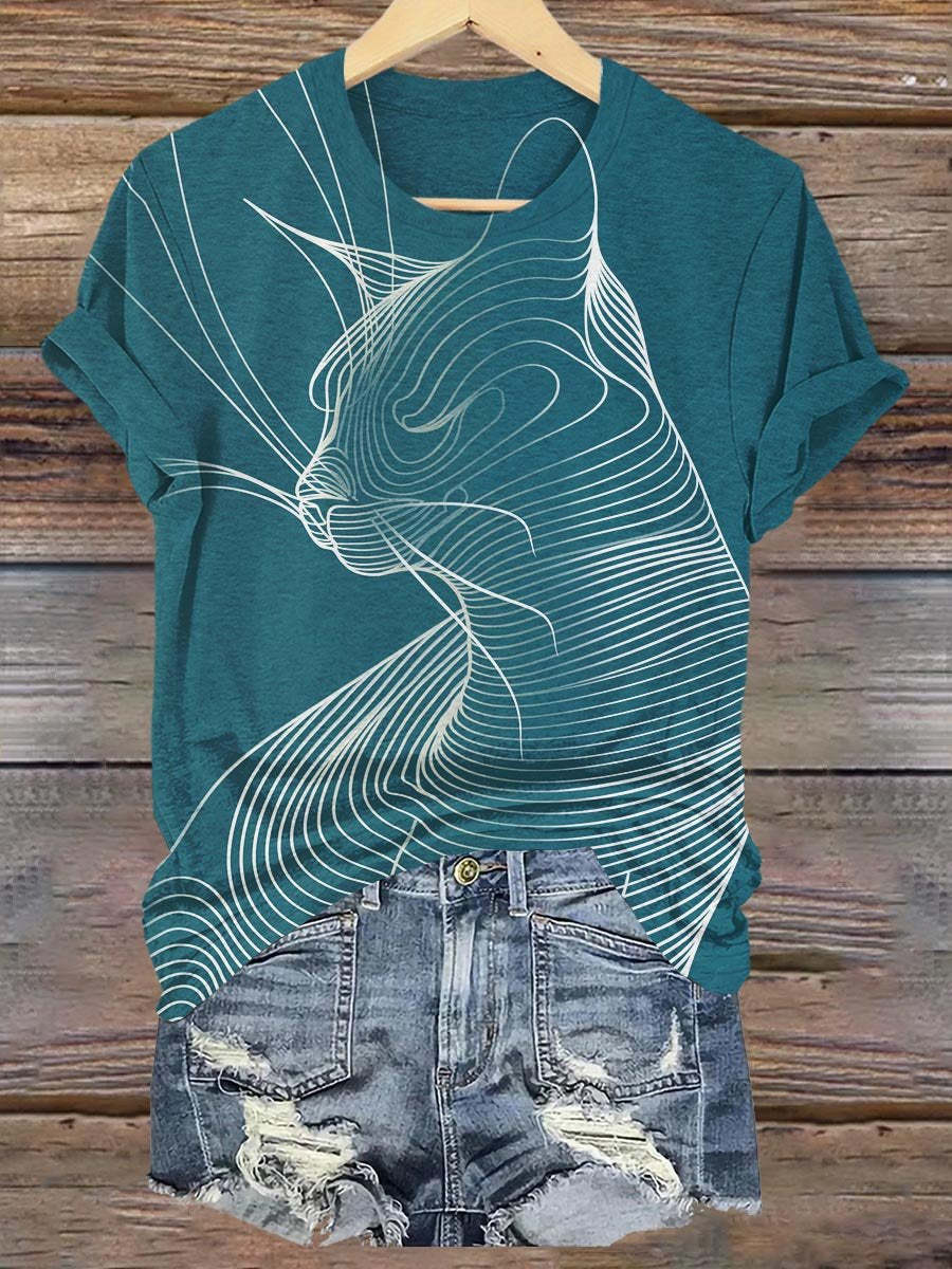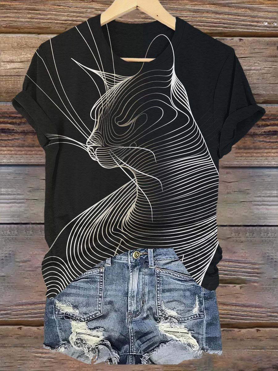 Abstract Geometric Cat Art Print T-shirt