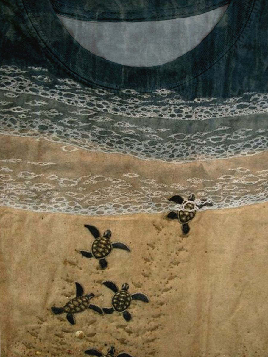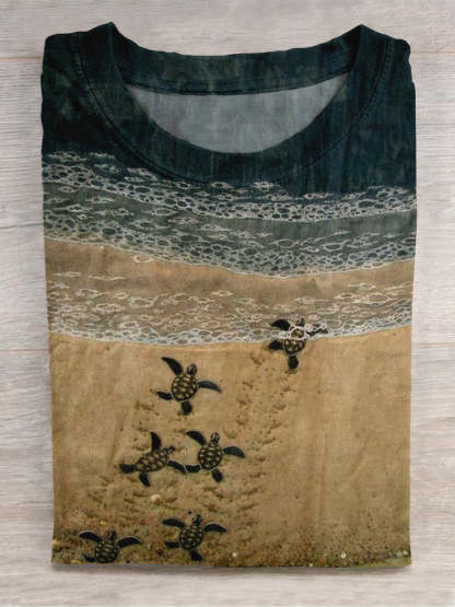 Baby Sea Turtles Beach Art Casual Print T-shirt