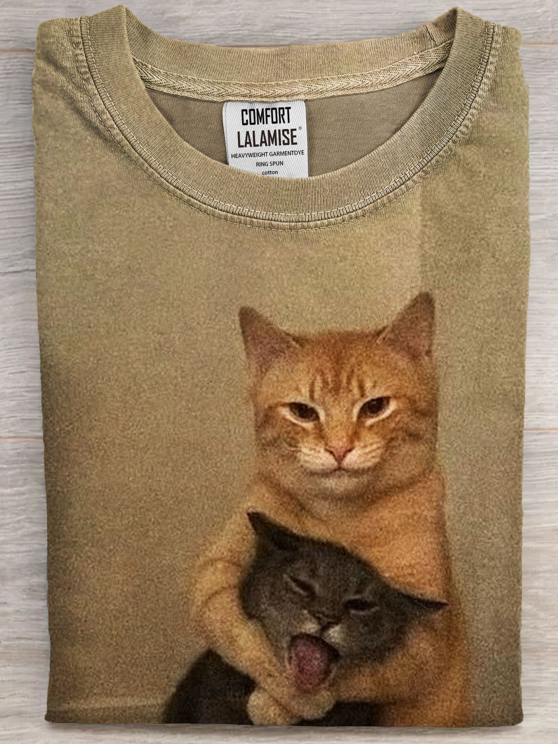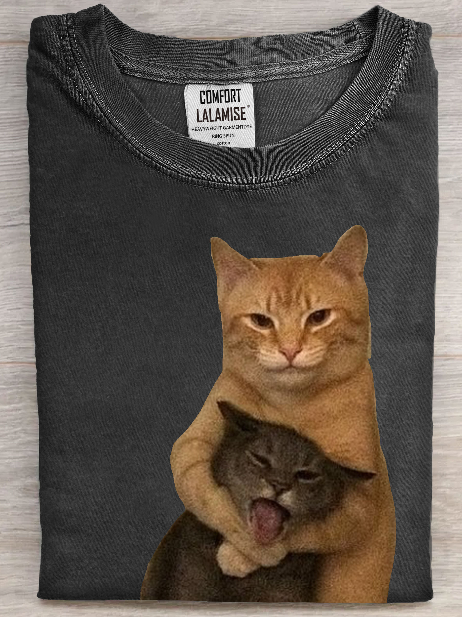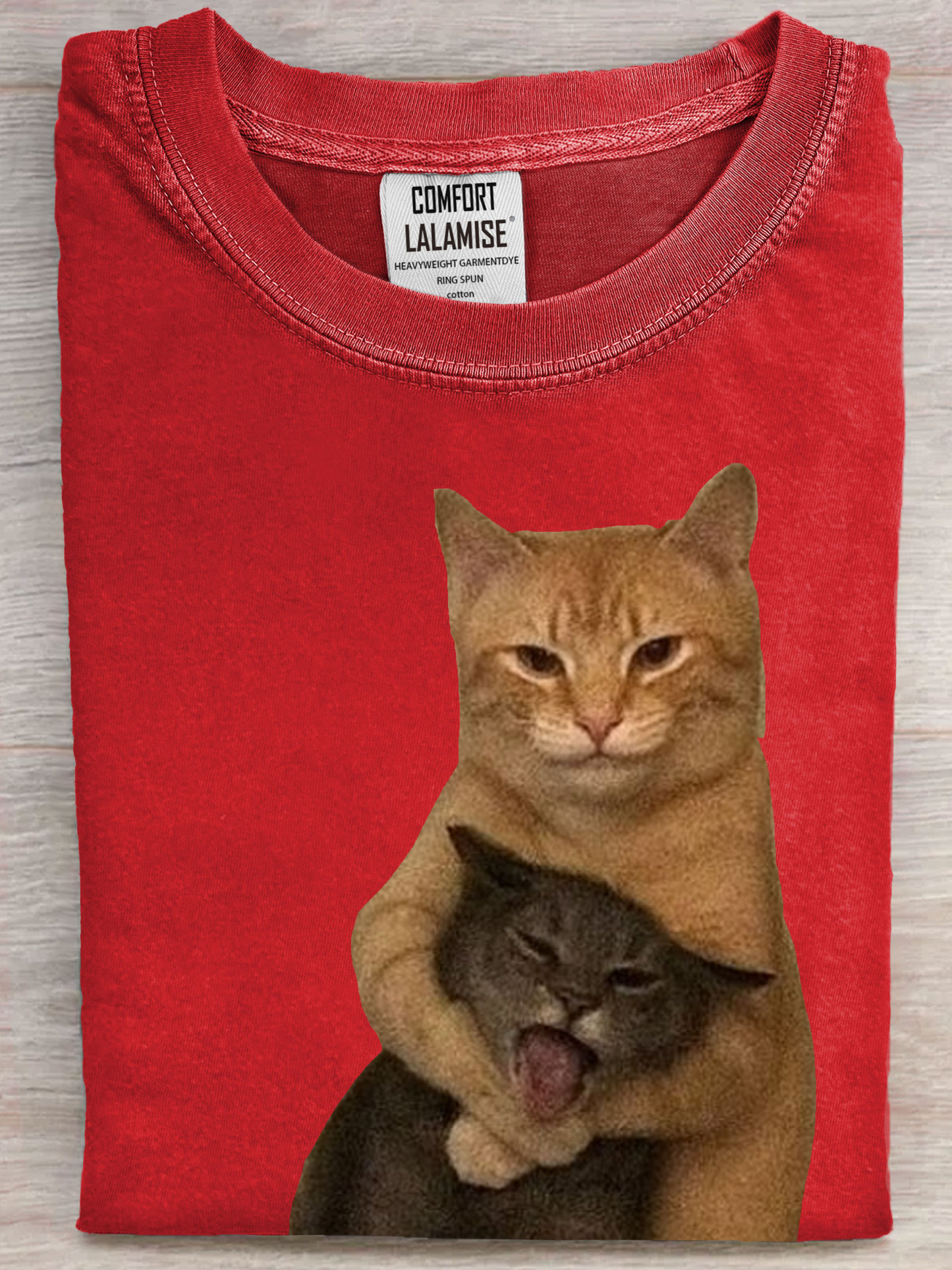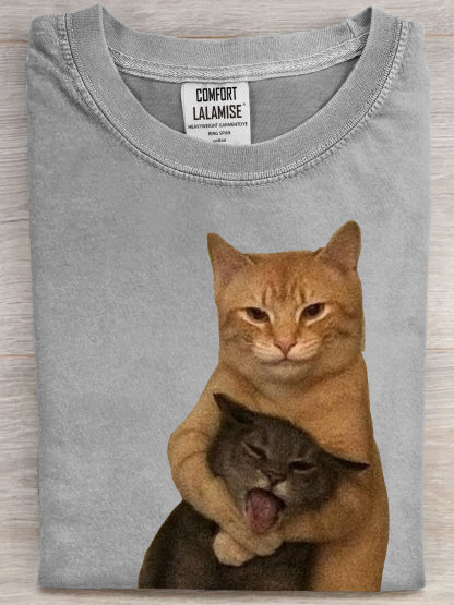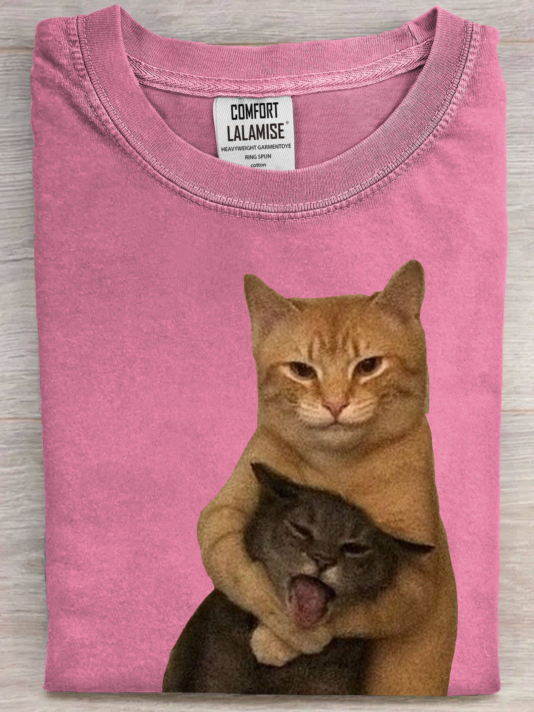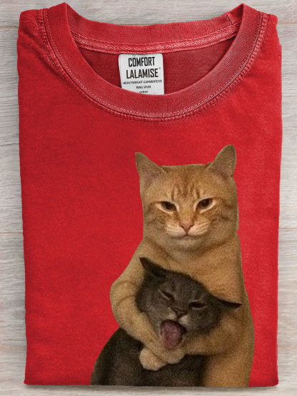 Best friend Funny Cat Art Print Casual Short Sleeve T-shirt