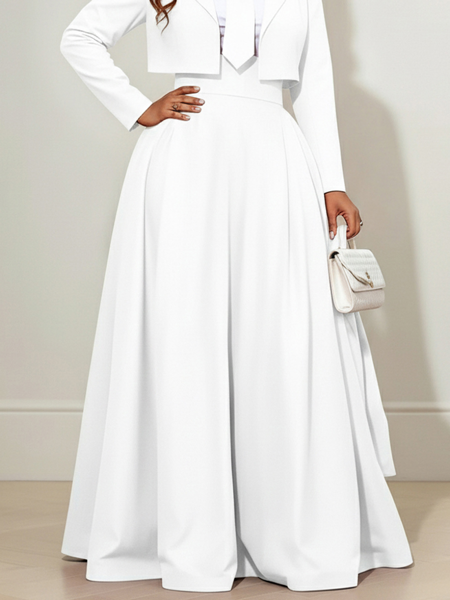 Big Hemline Pleated Pockets Solid Color Zipper Elasticated Waist High Waisted Wide Leg Pants