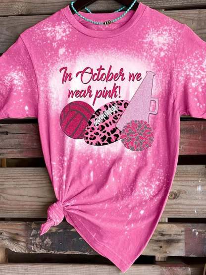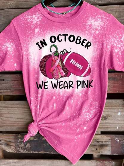 Breast Cancer Awareness Tackle Cancer Football Leopard Print T-Shirt