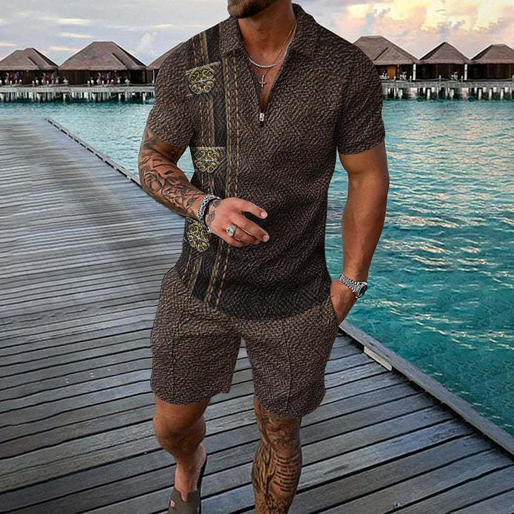 Brown Totem Polo Shirt And Shorts Co-Ord