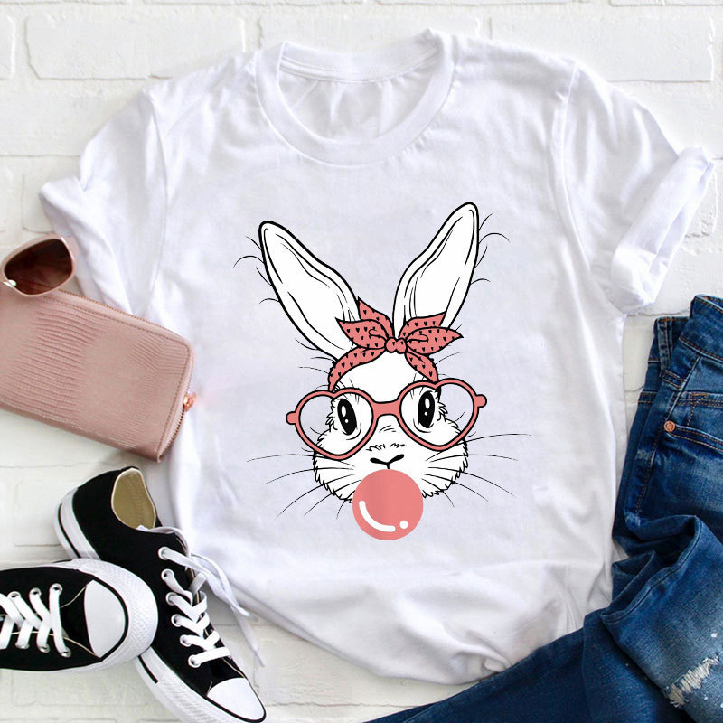 Bunny Blowing Bubbles Teacher T-Shirt
