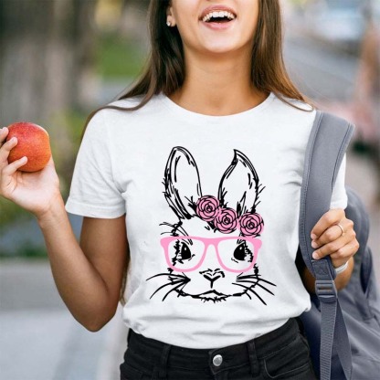 Bunny With Pink Glasses Teacher T-Shirt – lolonb