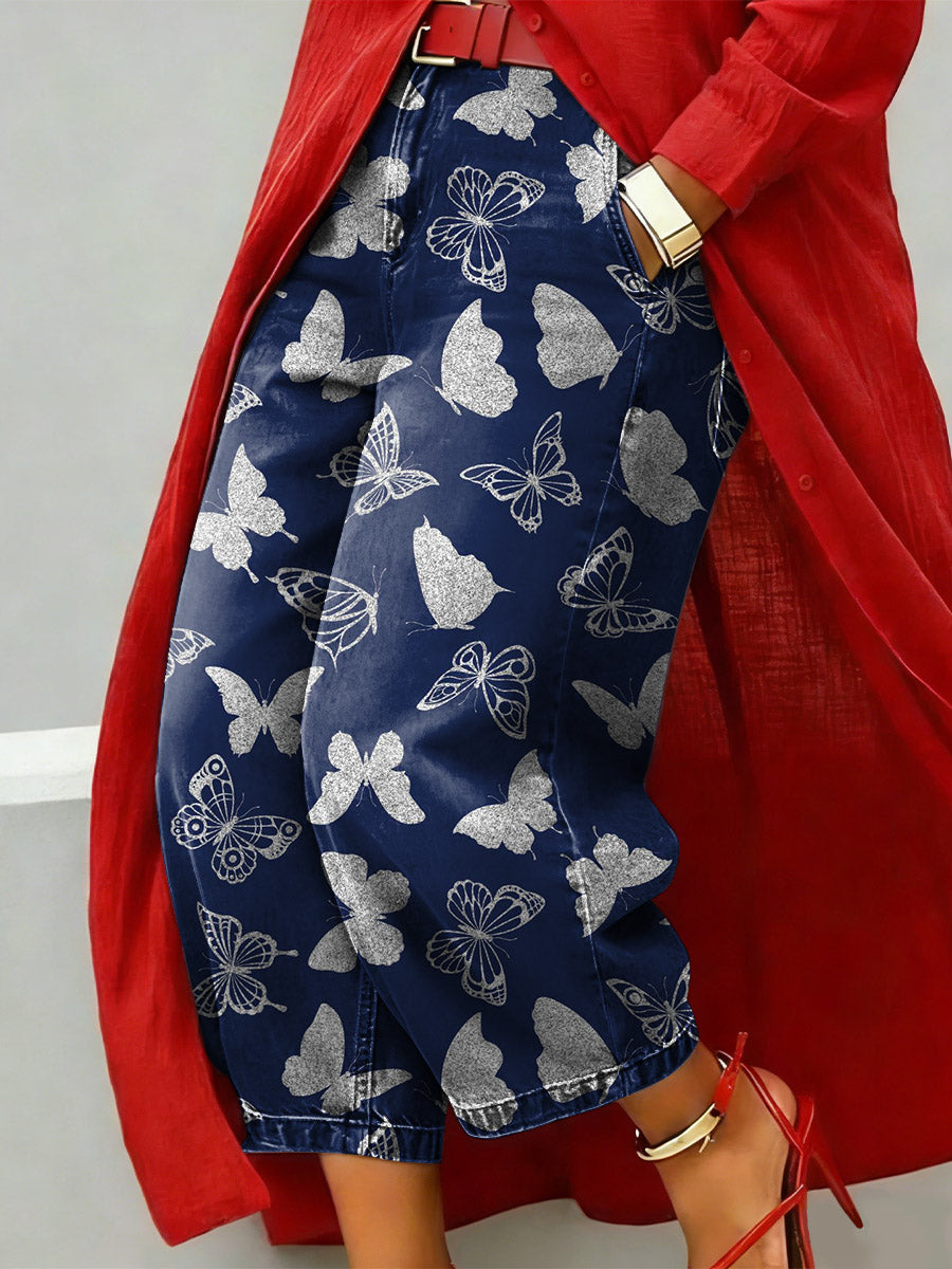 Butterfly Decorative Patterns Women's Casual Jeans