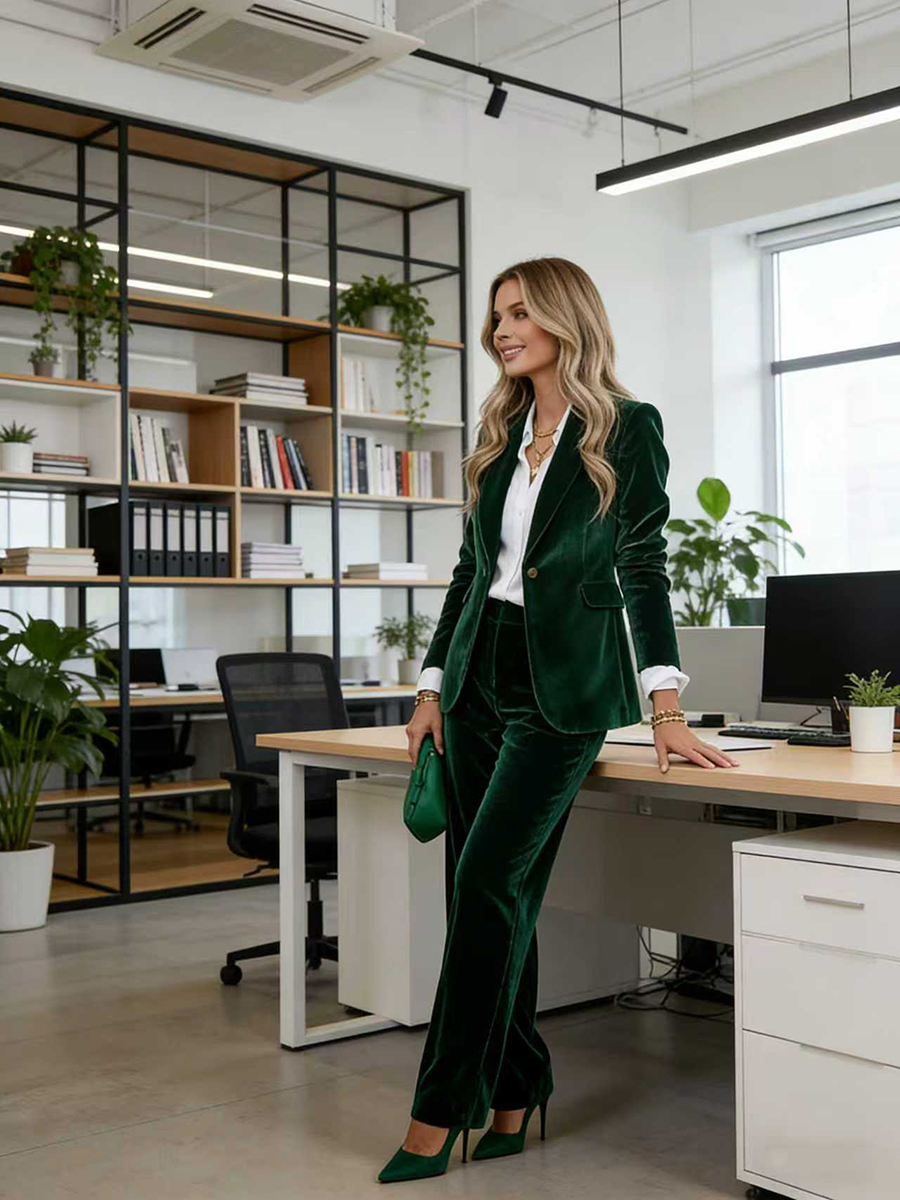 Buttoned Solid Color Long Sleeves Notched Collar Outerwear Blazer Suits