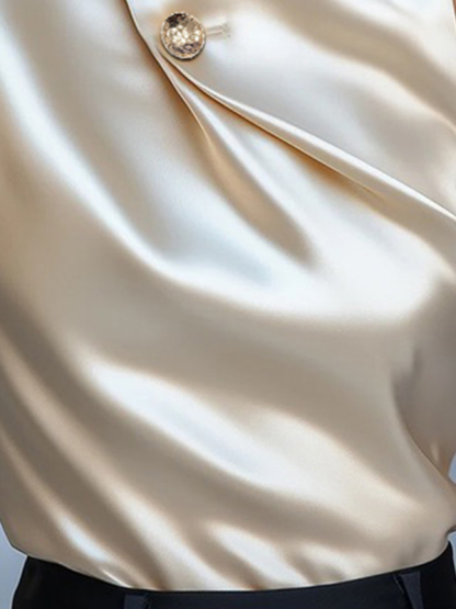 Buttoned Solid Color Sleeveless Stand Collar Tank Top