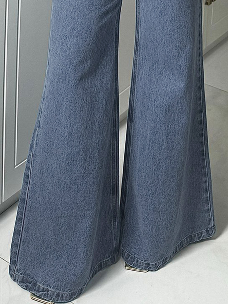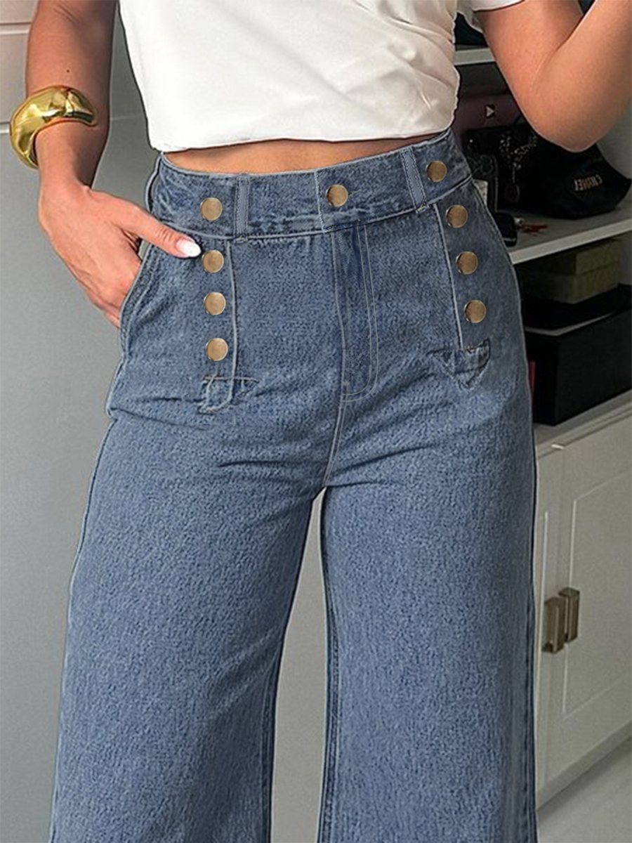Buttoned Split-Joint High Waisted Loose Jean Pants Bottoms