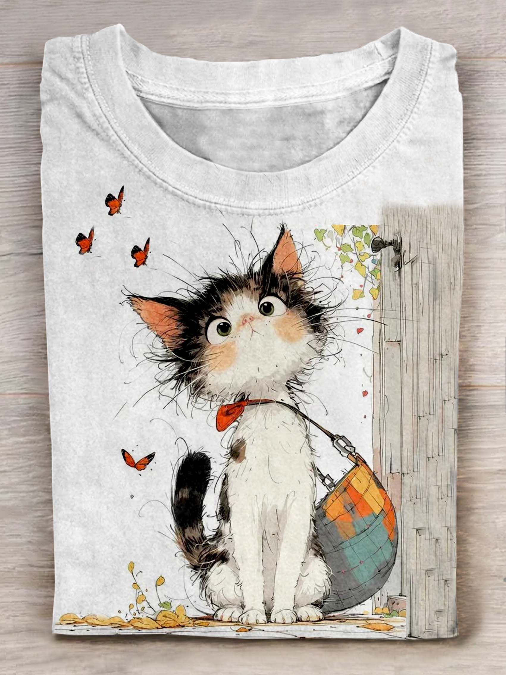 Cat Art Print Casual Short Sleeve T-shirt – lolonb