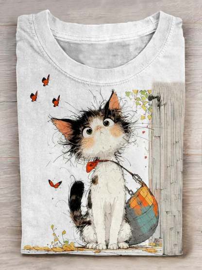 Cat Art Print Casual Short Sleeve T-shirt