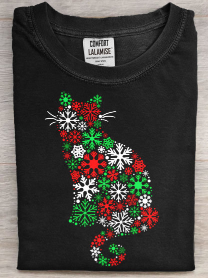 Christmas Cat Art Print Casual Short Sleeve T-shirt