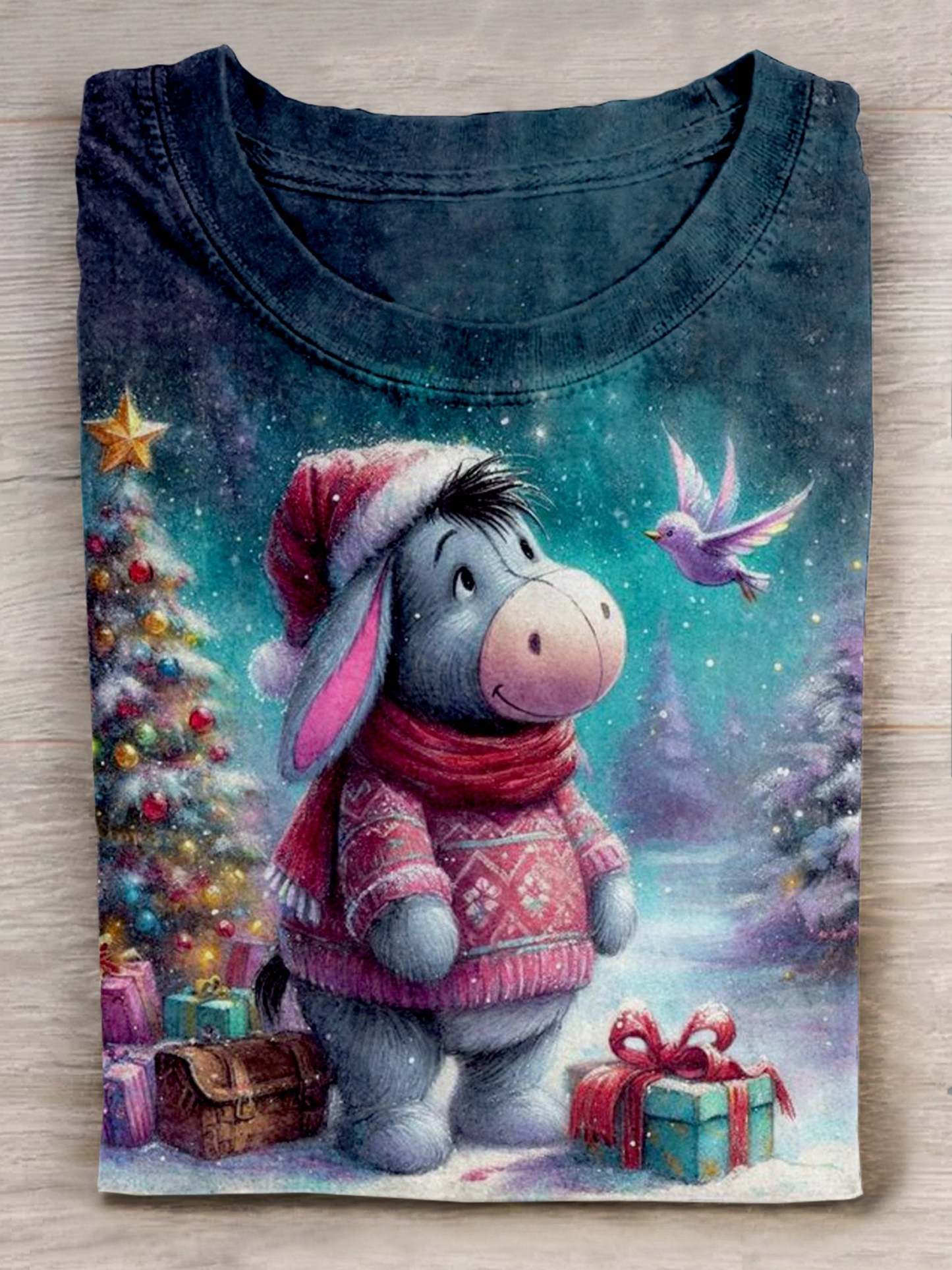 Christmas Donkey Art Print Casual Short Sleeve T-shirt