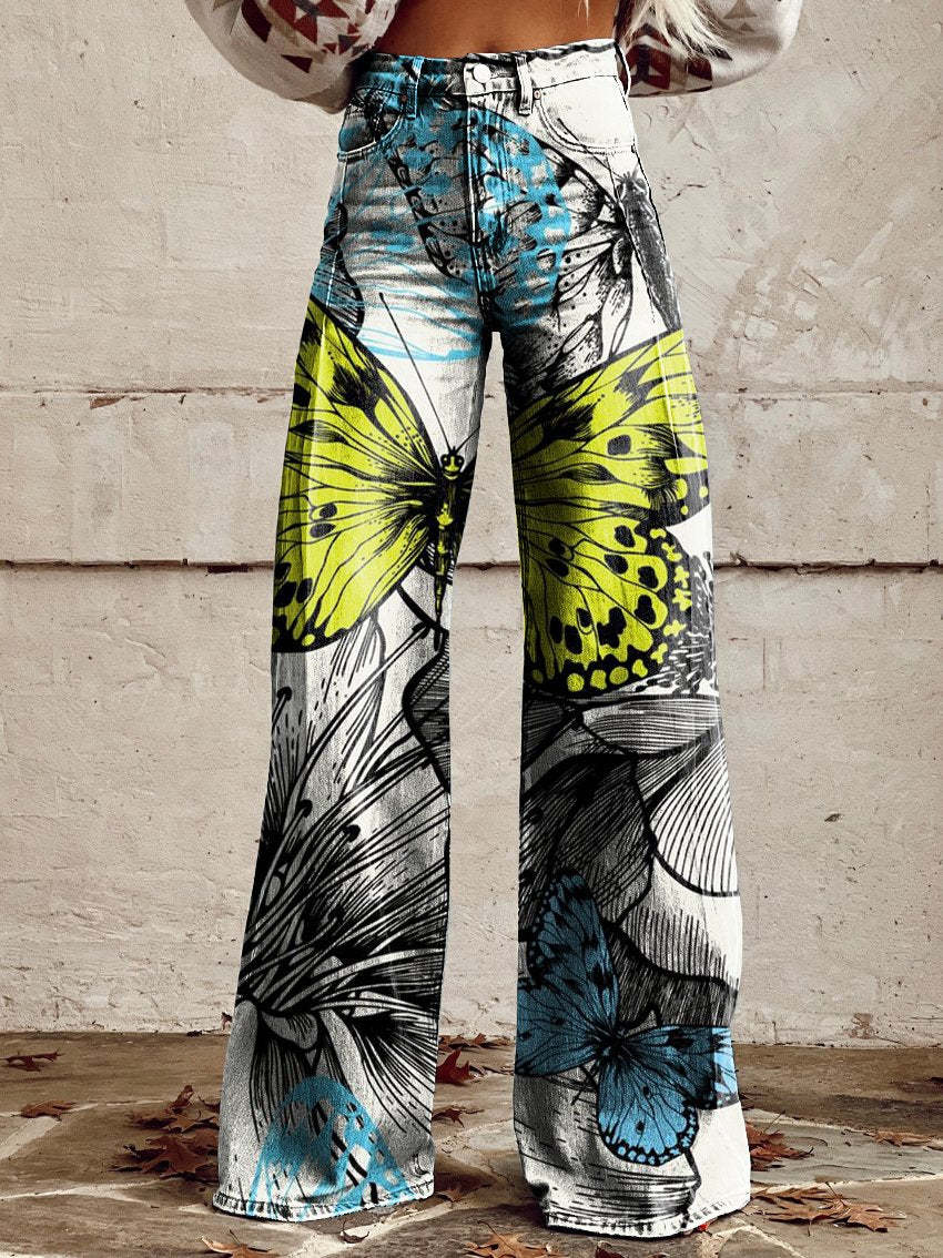 Colorful Beautiful Butterflies Women's Print Casual Wide Leg Pants