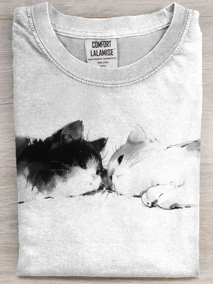 Companion Cat Art Print Casual Short Sleeve T-shirt