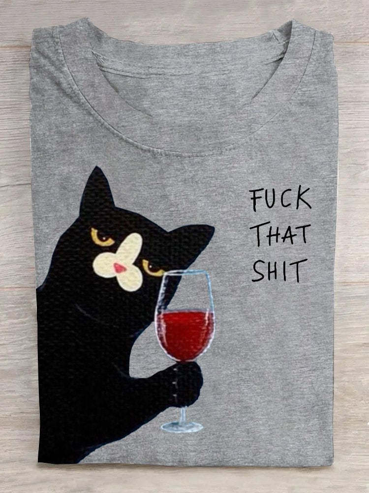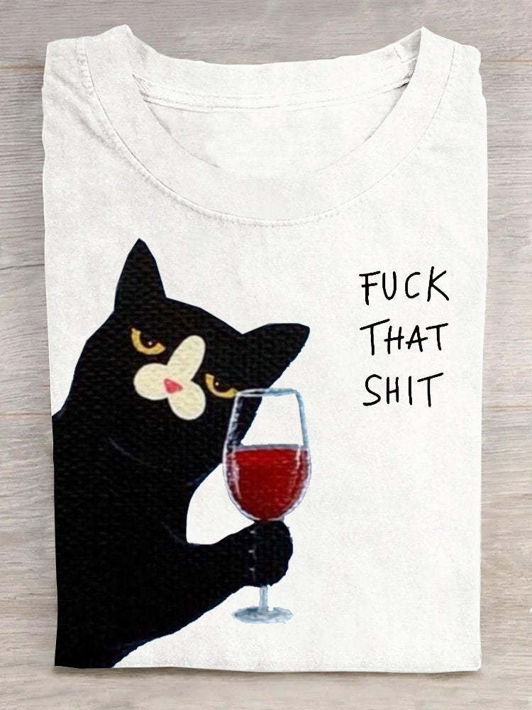 Casual Crew Neck Loose Cat T-Shirt