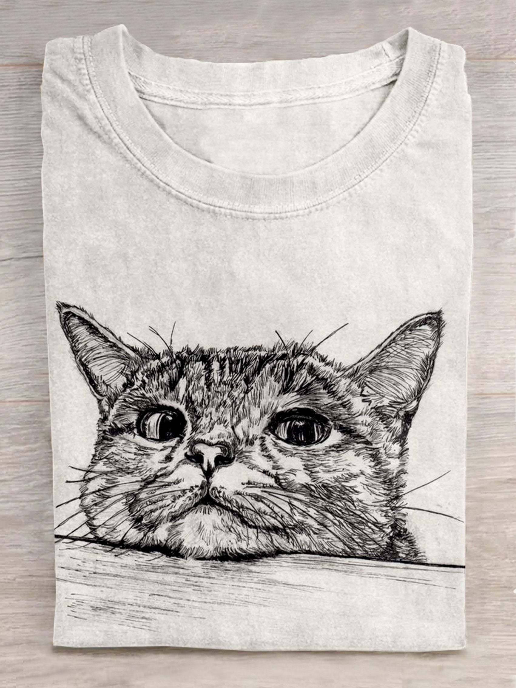Cute Cat Art Print Casual Short Sleeve T-shirt – lolonb