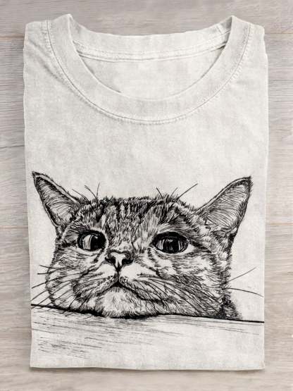 Cute Cat Art Print Casual Short Sleeve T-shirt