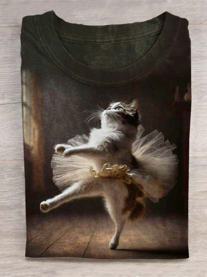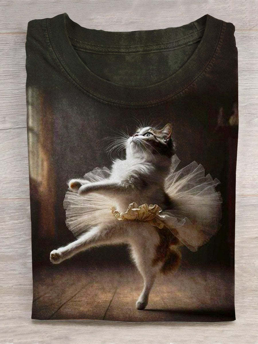 Cute Cat Dancing Art Print Casual T-shirt