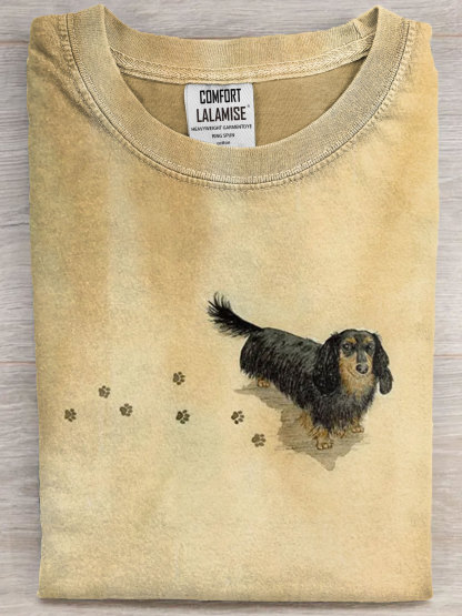 Cute Dachshund Dog Art Print Casual Short Sleeve T-shirt