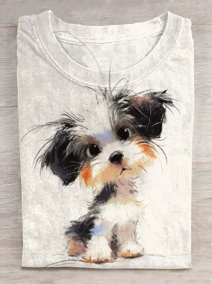 Cute Dog Art Print Casual Short Sleeve T-shirt