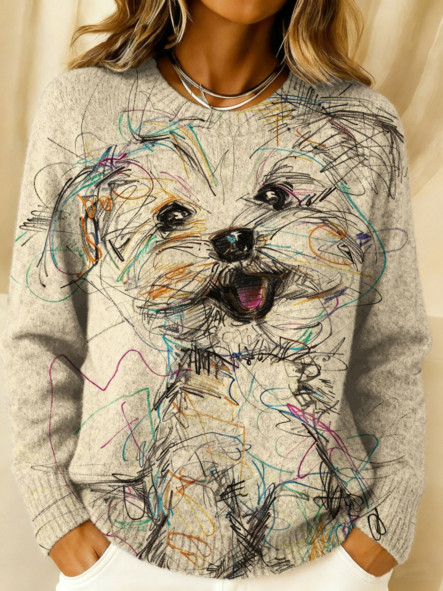 Cute Dog Art Print Long Sleeve Sweater