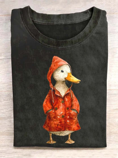 Cute Duck Art Print Casual Short Sleeve T-Shirt