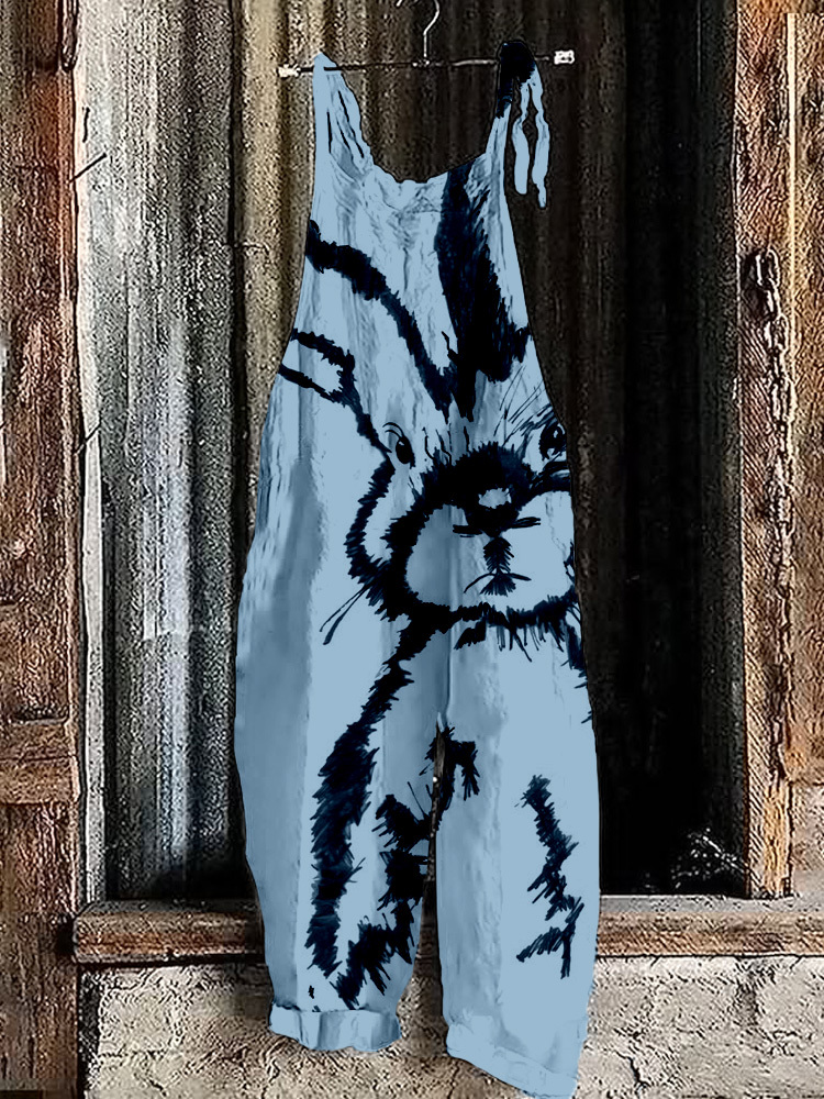 Cute Rabbit Pattern Linen Blend Cozy Jumpsuit