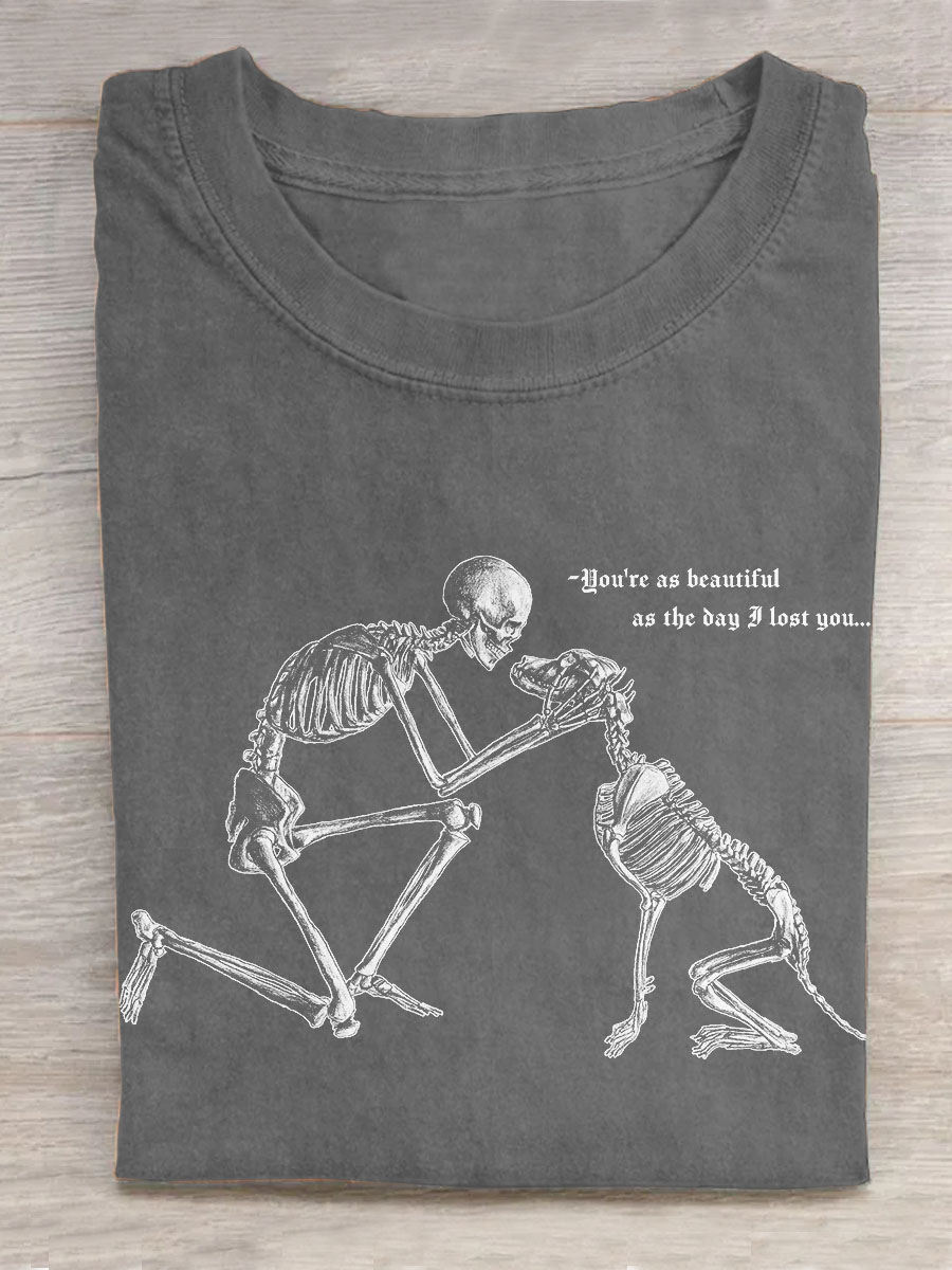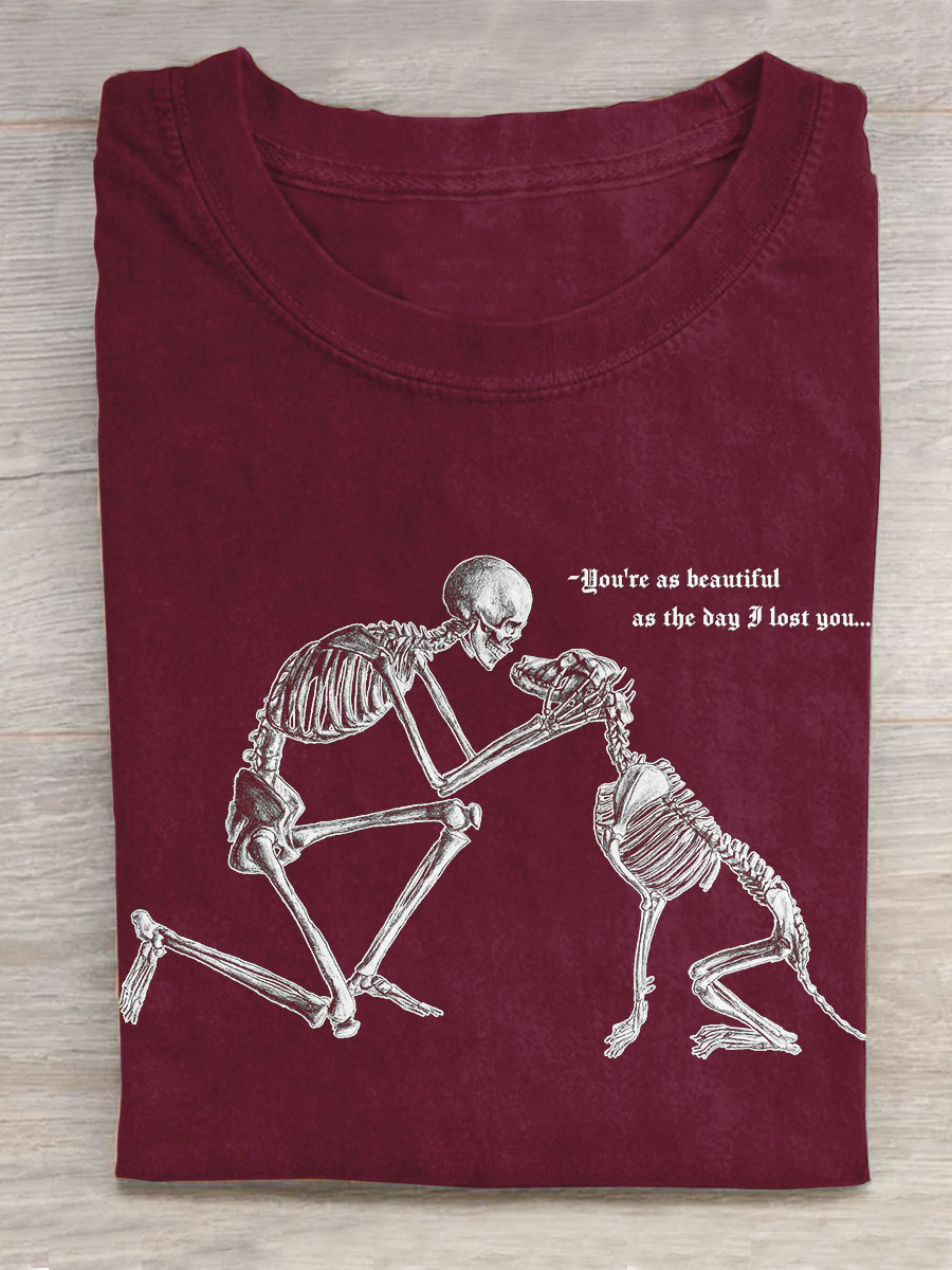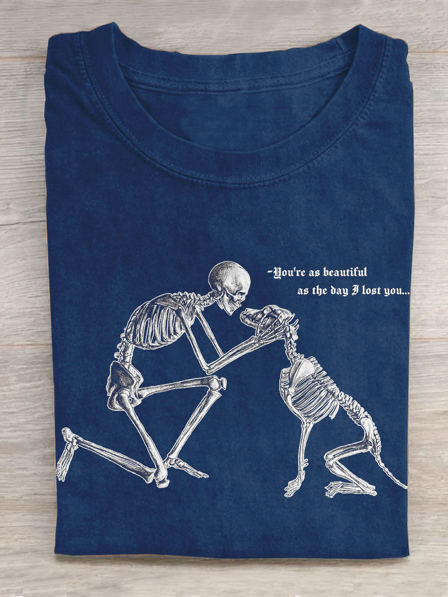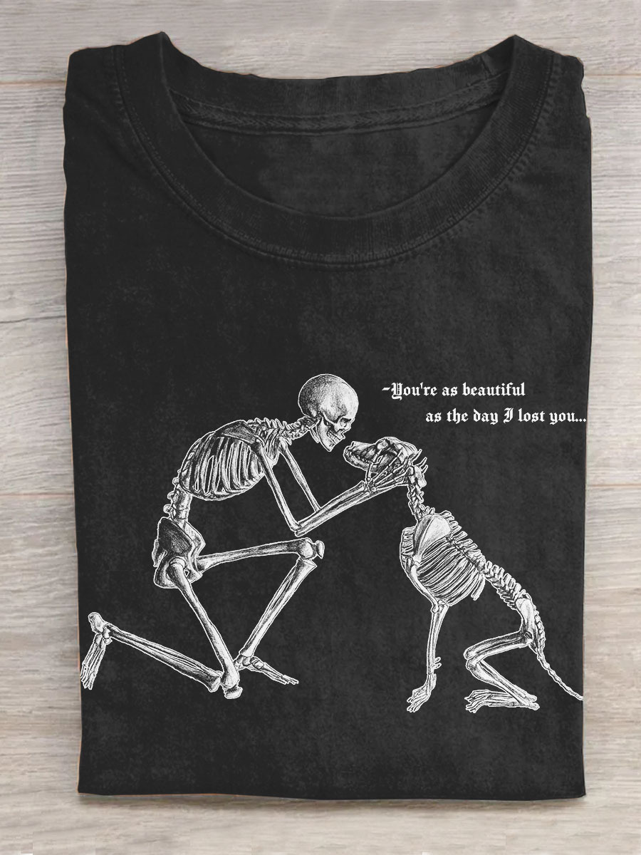 Dog And Human Skull You're As Beautiful As The Day I Lost You Art Print Design T-shirt