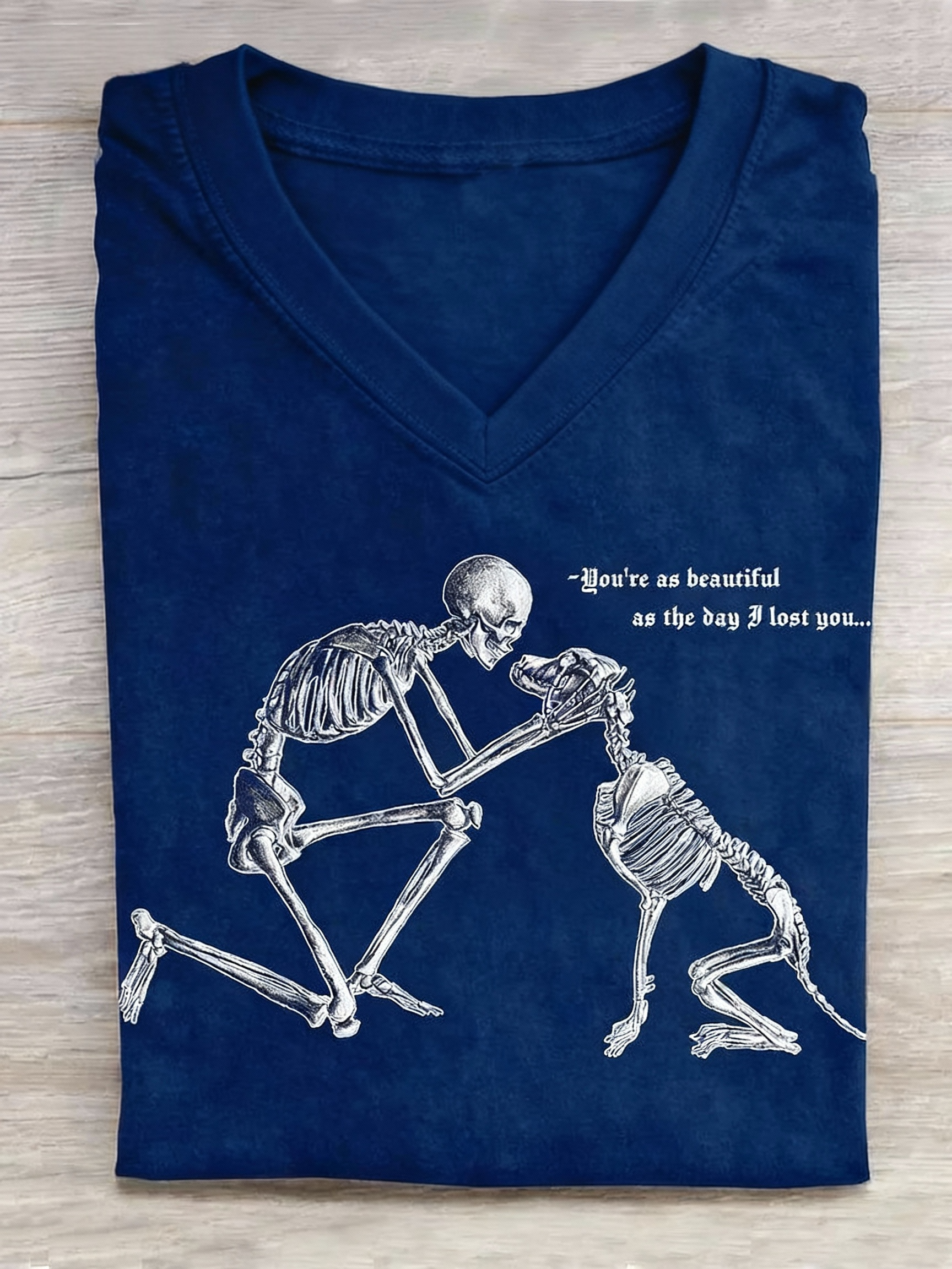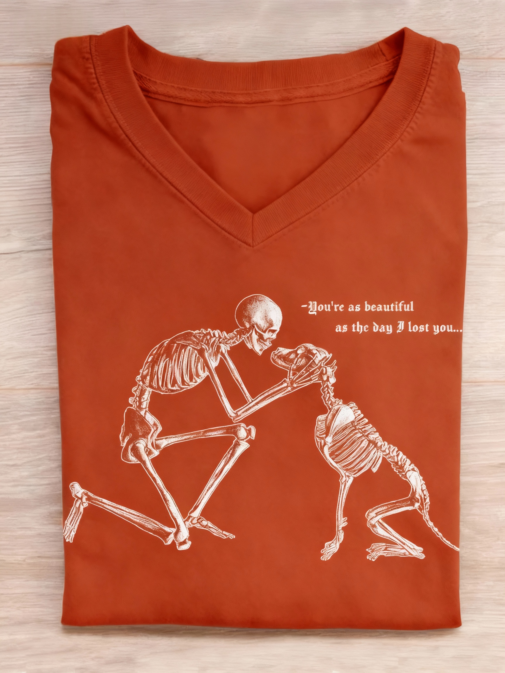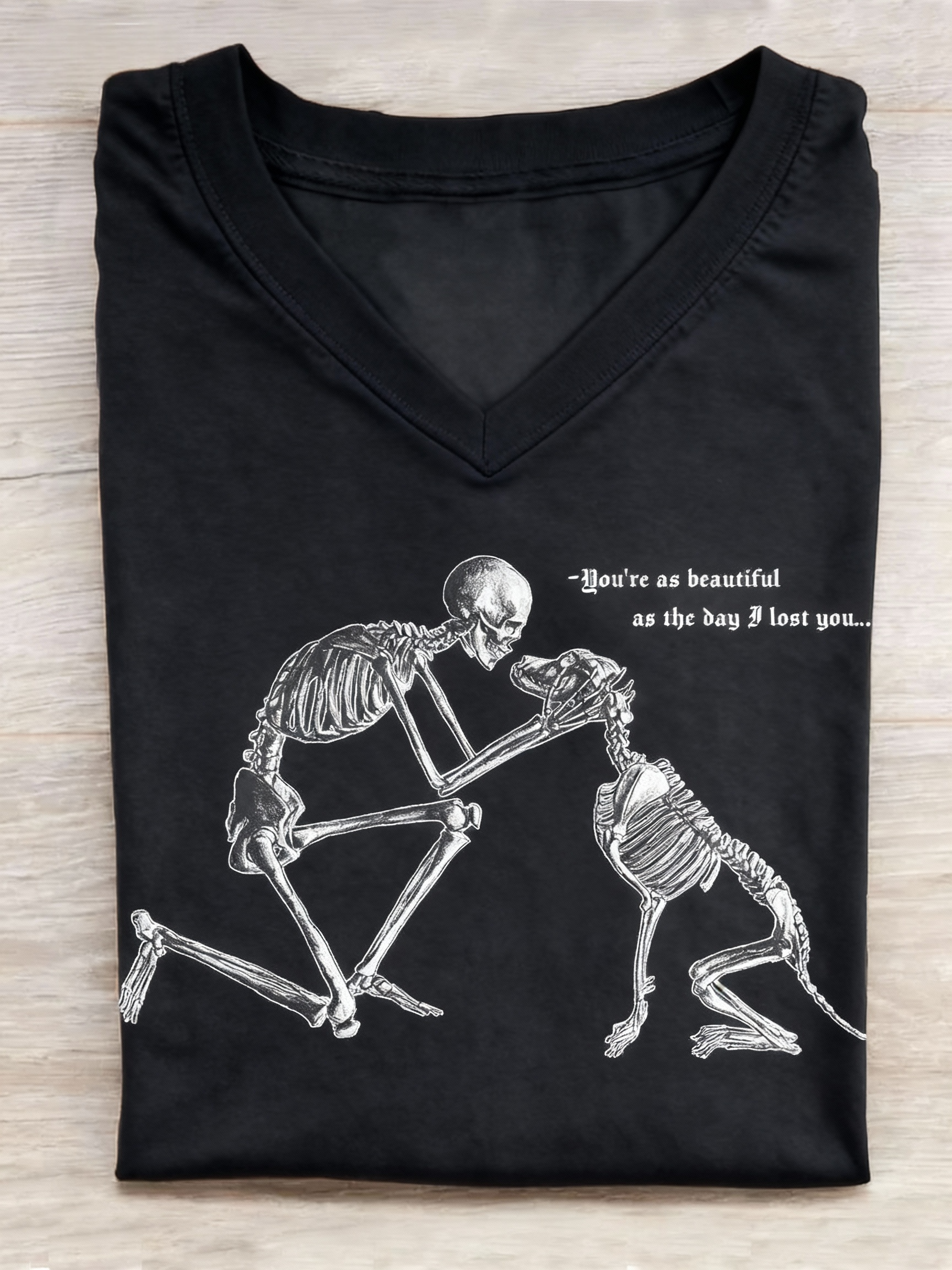 Dog And Human Skull You're As Beautiful As The Day I Lost You Art Print Design T-shirt