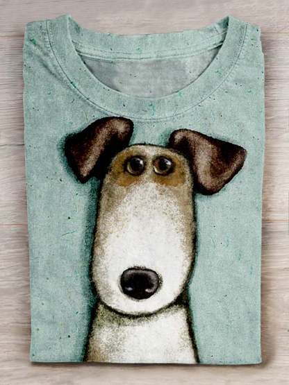Dog Art Print Casual Short Sleeve T-shirt