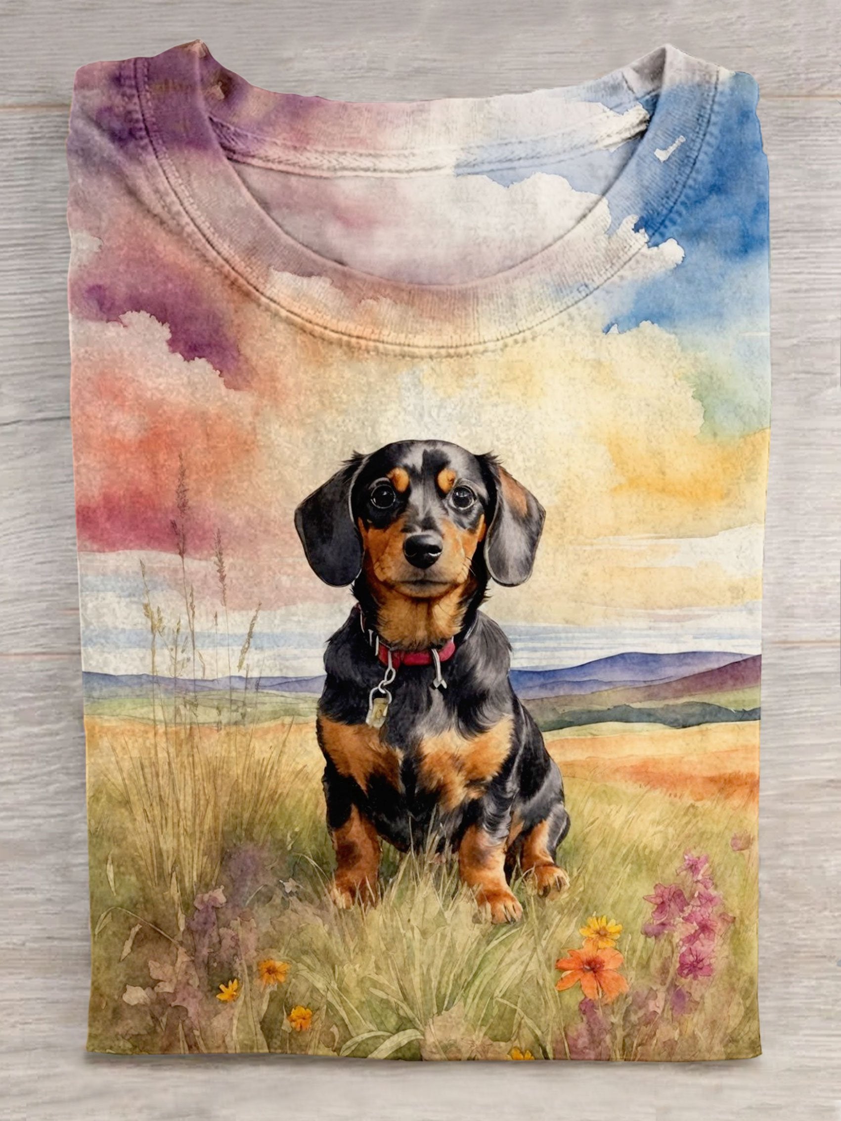 Dog Art Print Casual Short Sleeve T-shirt – lolonb