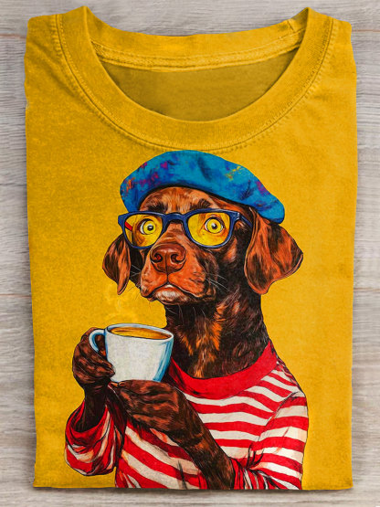 Dog Art Print Casual Short Sleeve T-shirt