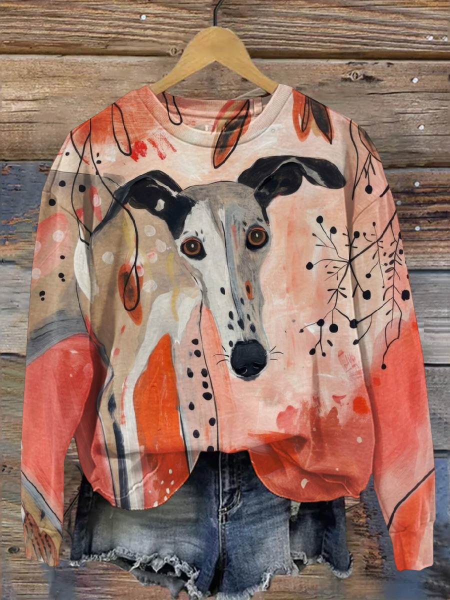 Dog Art Retro Print Casual Sweatshirt