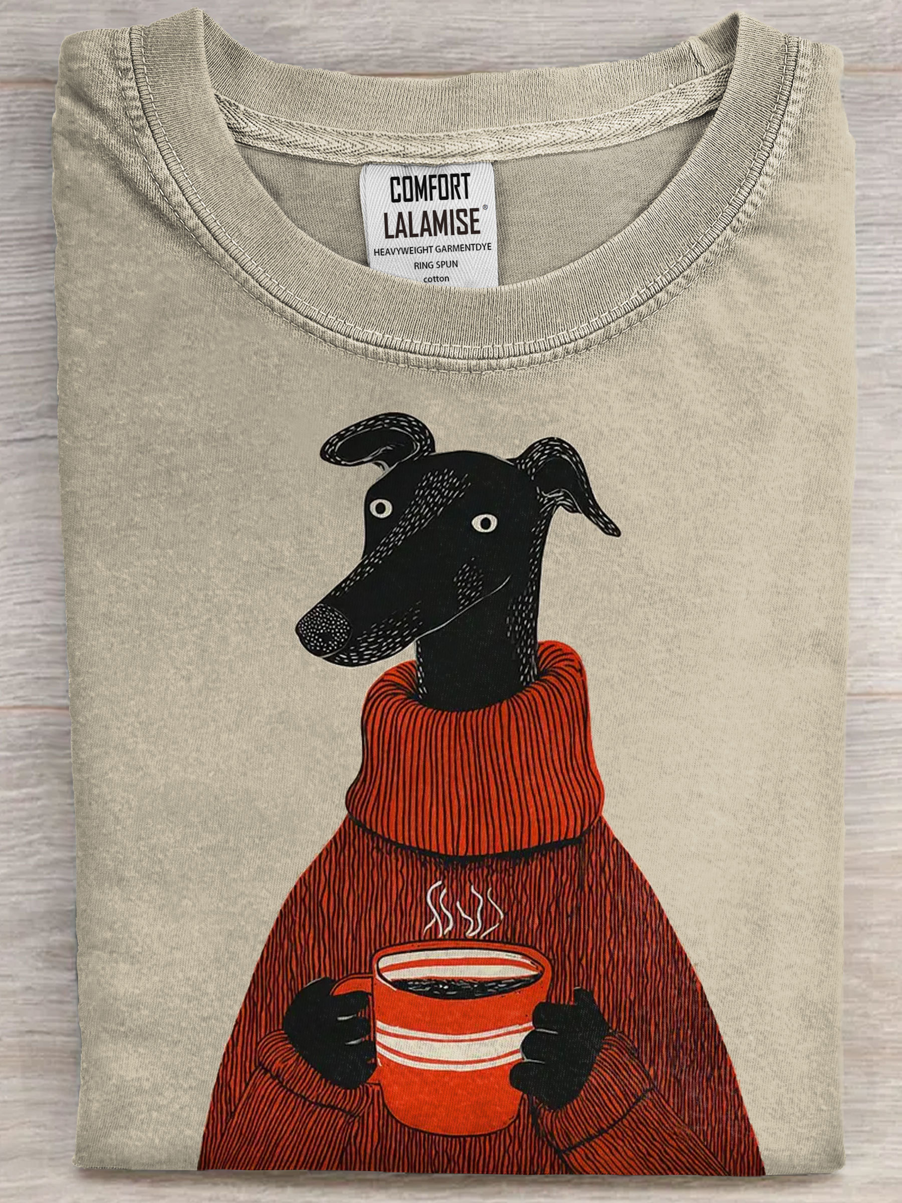 Dog Coffee Art Print Casual Short Sleeve T-shirt