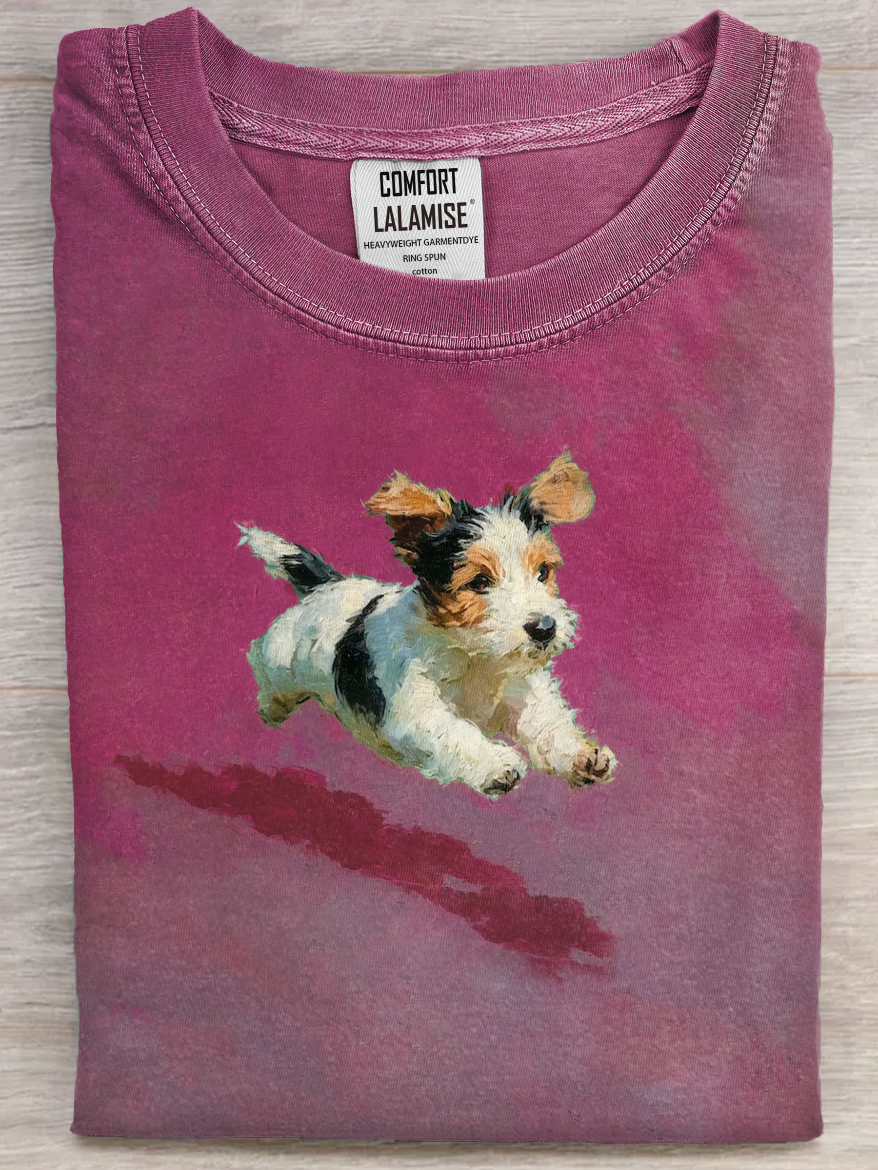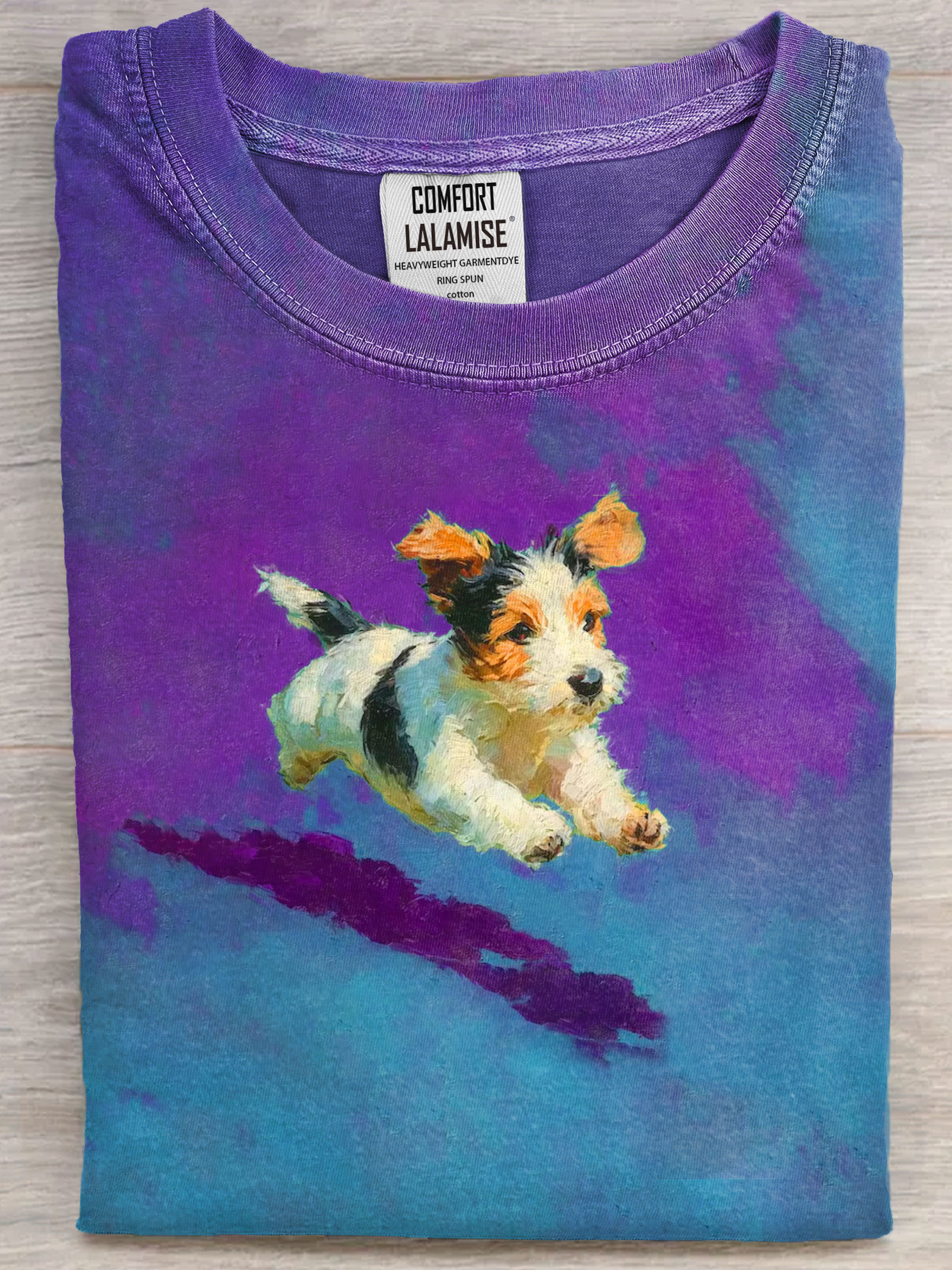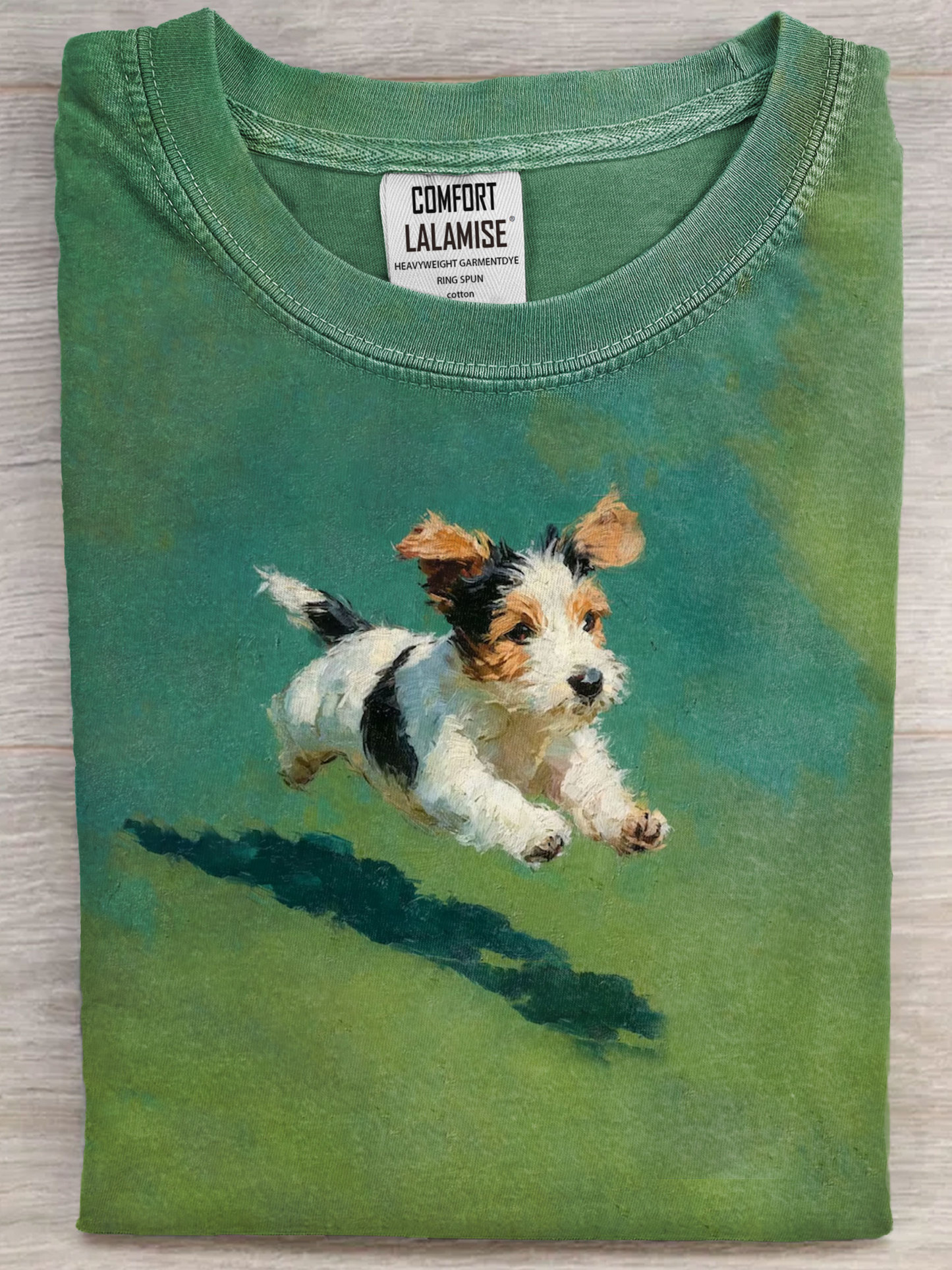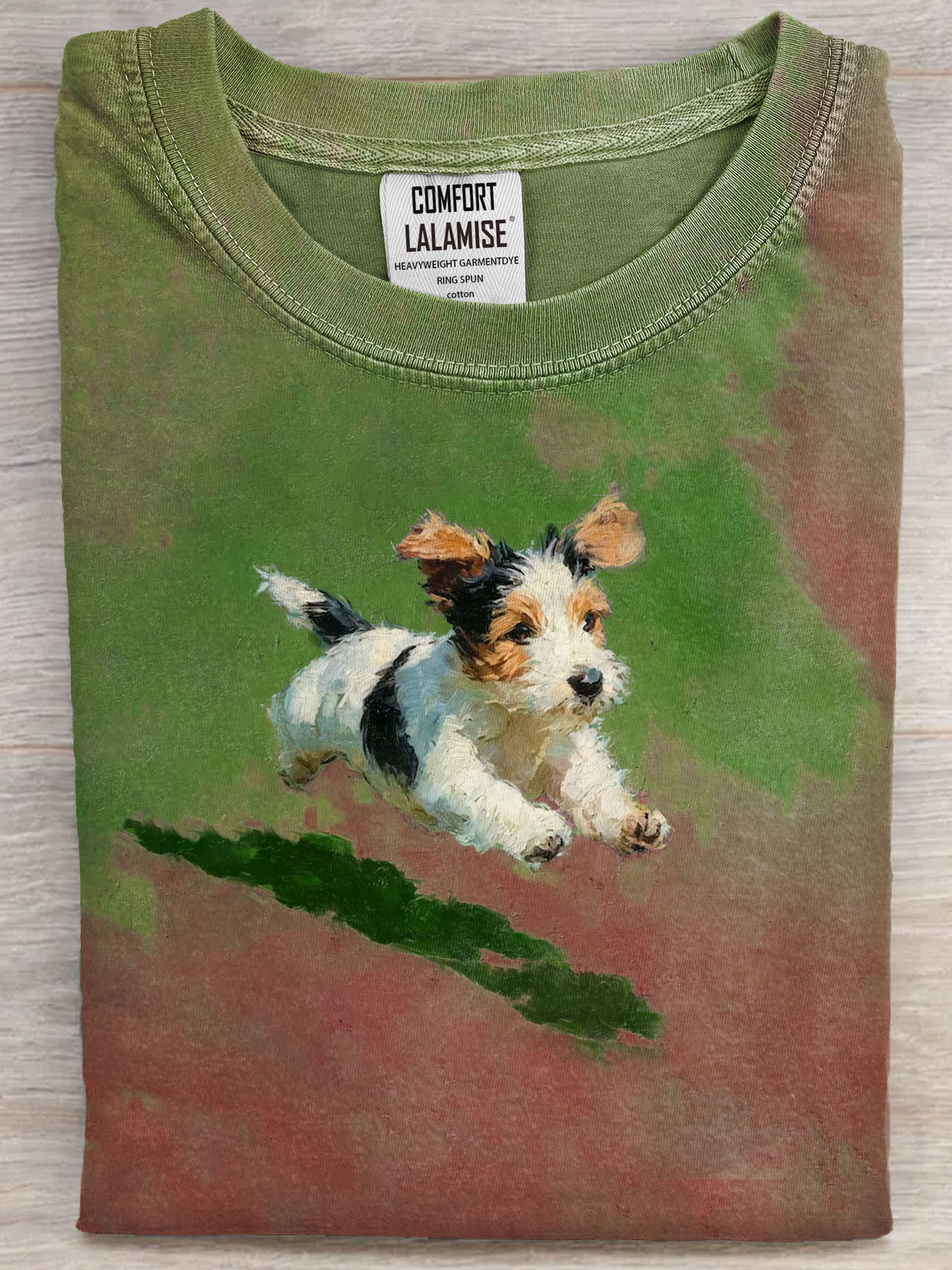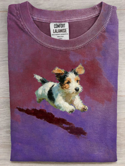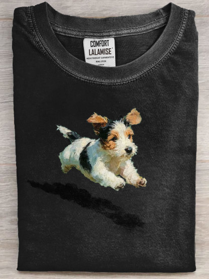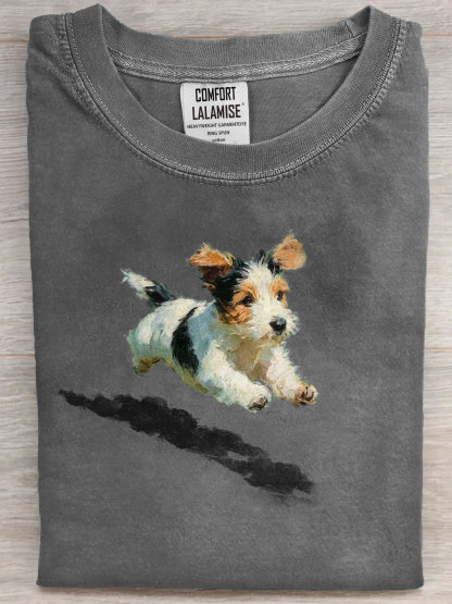 Dog Running In Grass Art Print Casual Short Sleeve T-shirt