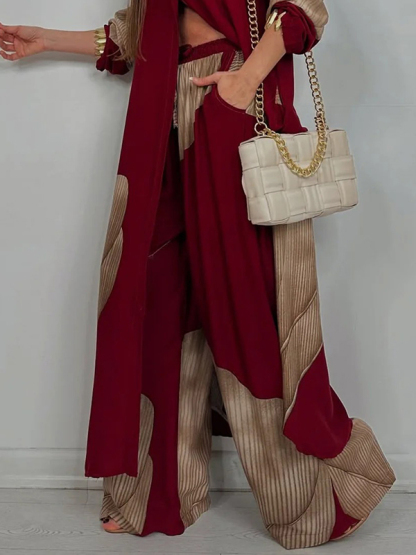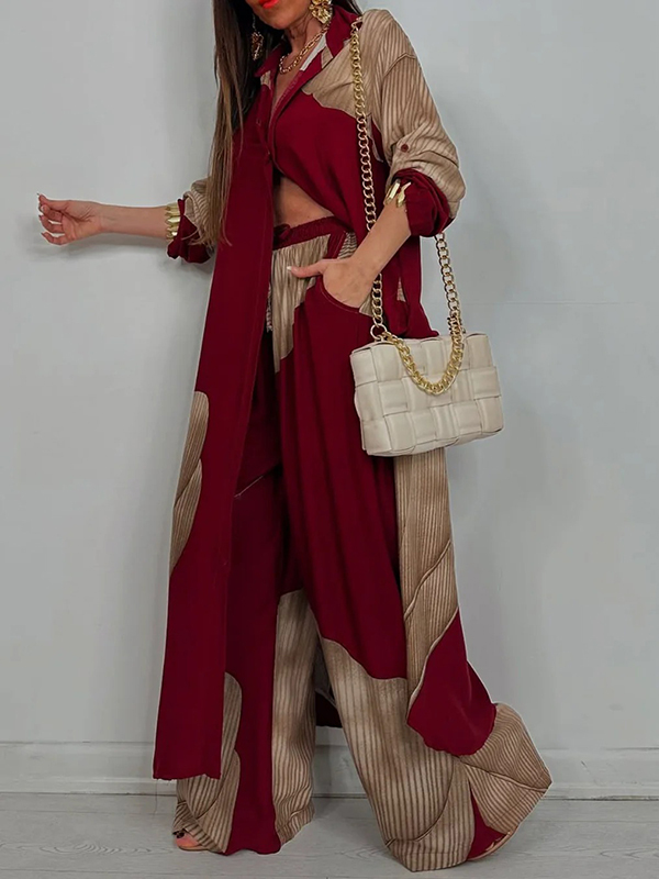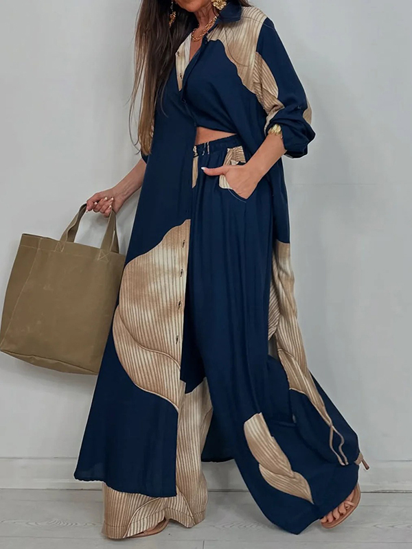 Drawstring Elasticity Floral Printed Split-Joint High Waisted Wide Leg Trousers Pants