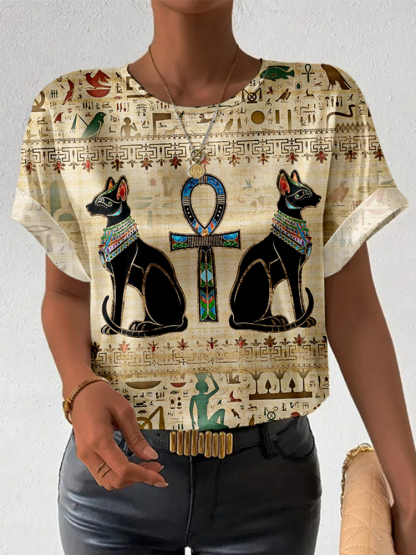 Egyptian Cats And Ankh Cross Vintage Cozy T Shirt
