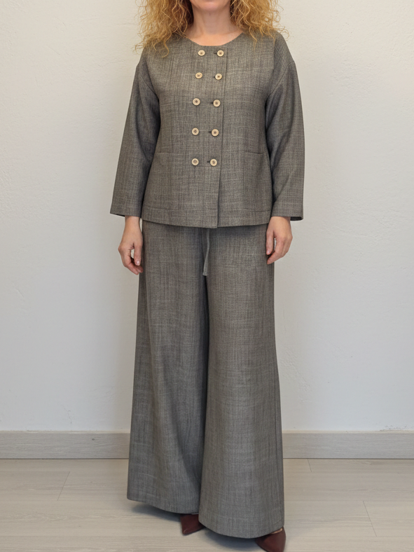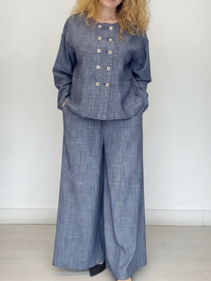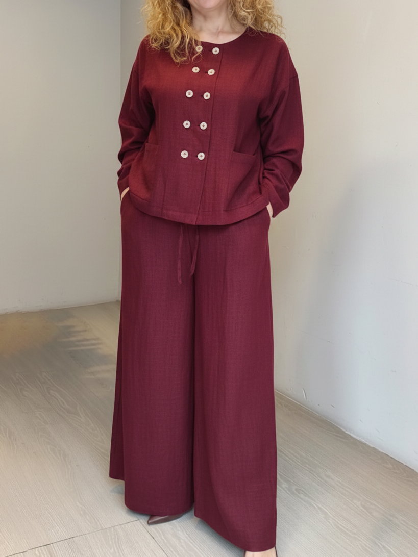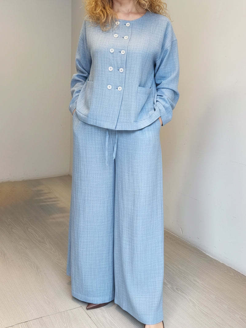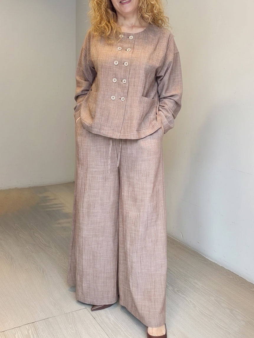 Elegant Button-up Shirt And Wide-leg Trousers Linen Set