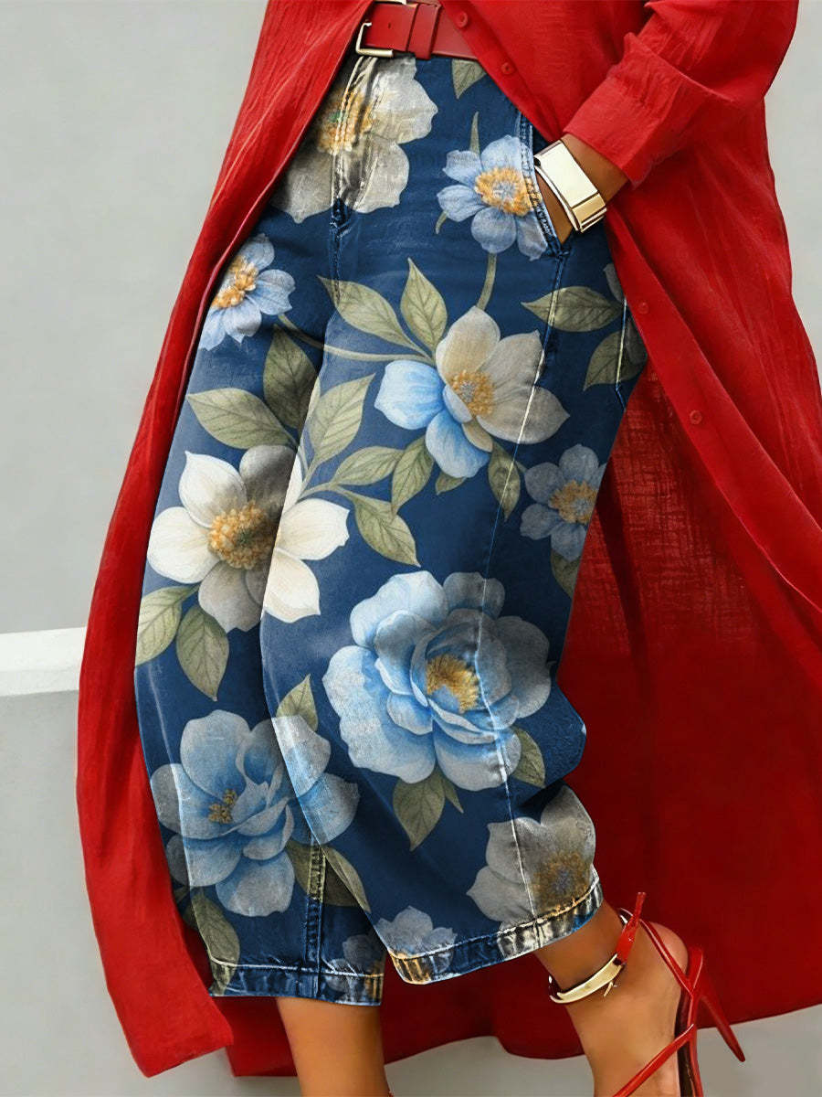 Elegant Floral Decorative Patterns Women's Casual Jeans