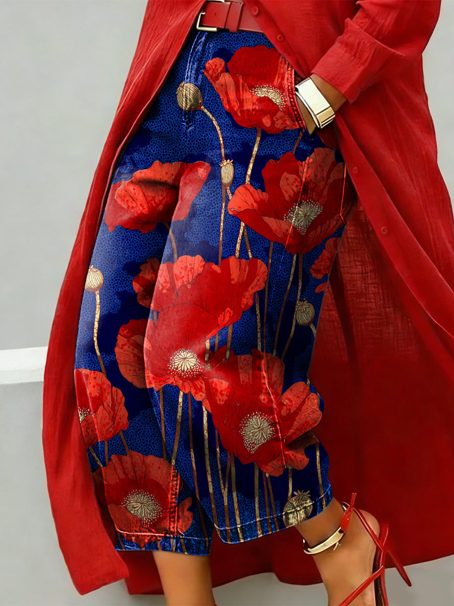 Elegant Floral Decorative Patterns Women's Denim Pants