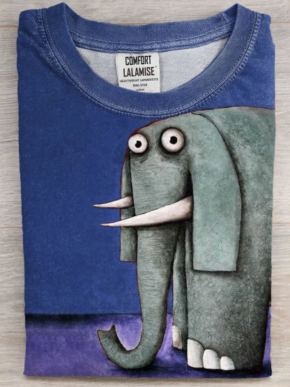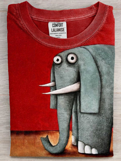 Elephant Art Print Casual Short Sleeve T-shirt