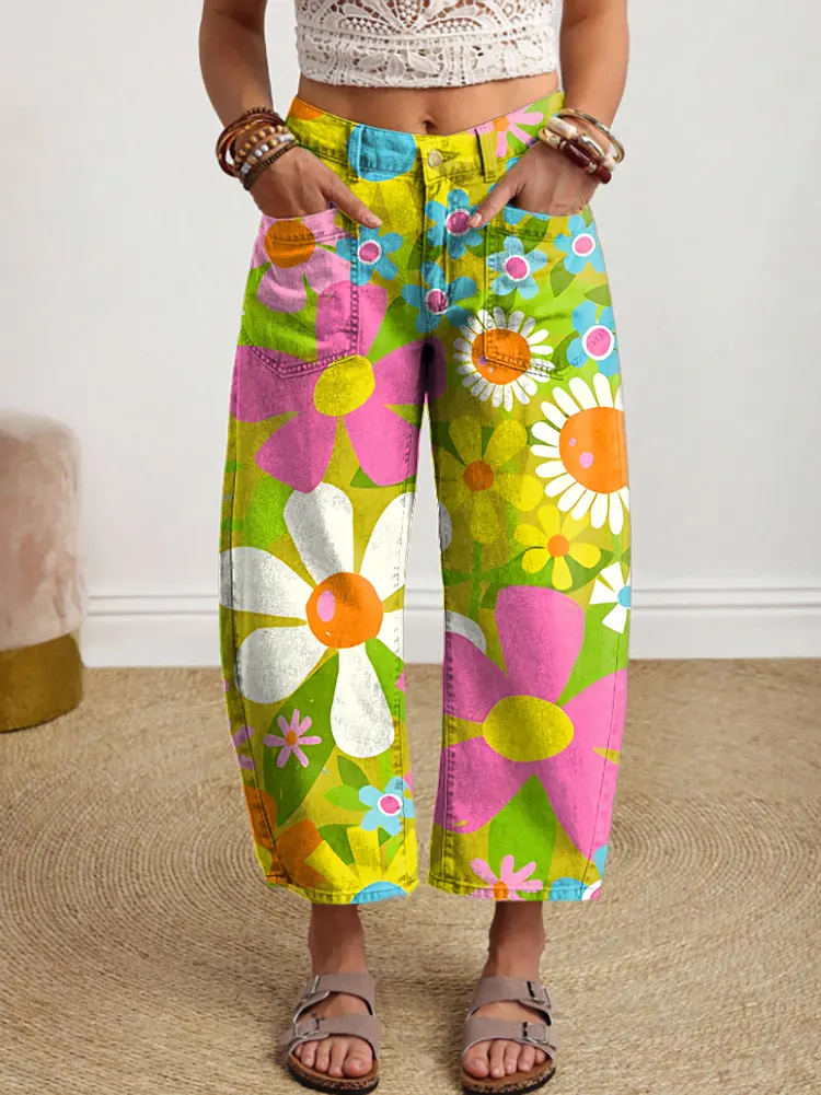 Ethnicity Colorful Flowers Women's Art Print Jeans