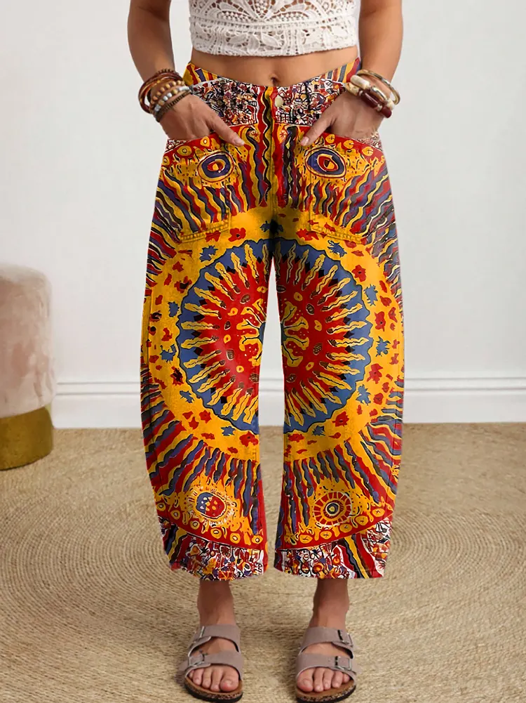 Ethnicity Geometry Abstract Sun Women's Art Print Jeans