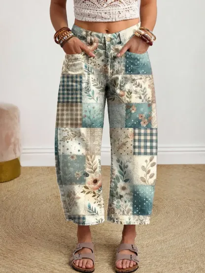 Ethnicity Geometry Flowers Patchwork Women's Art Print Jeans